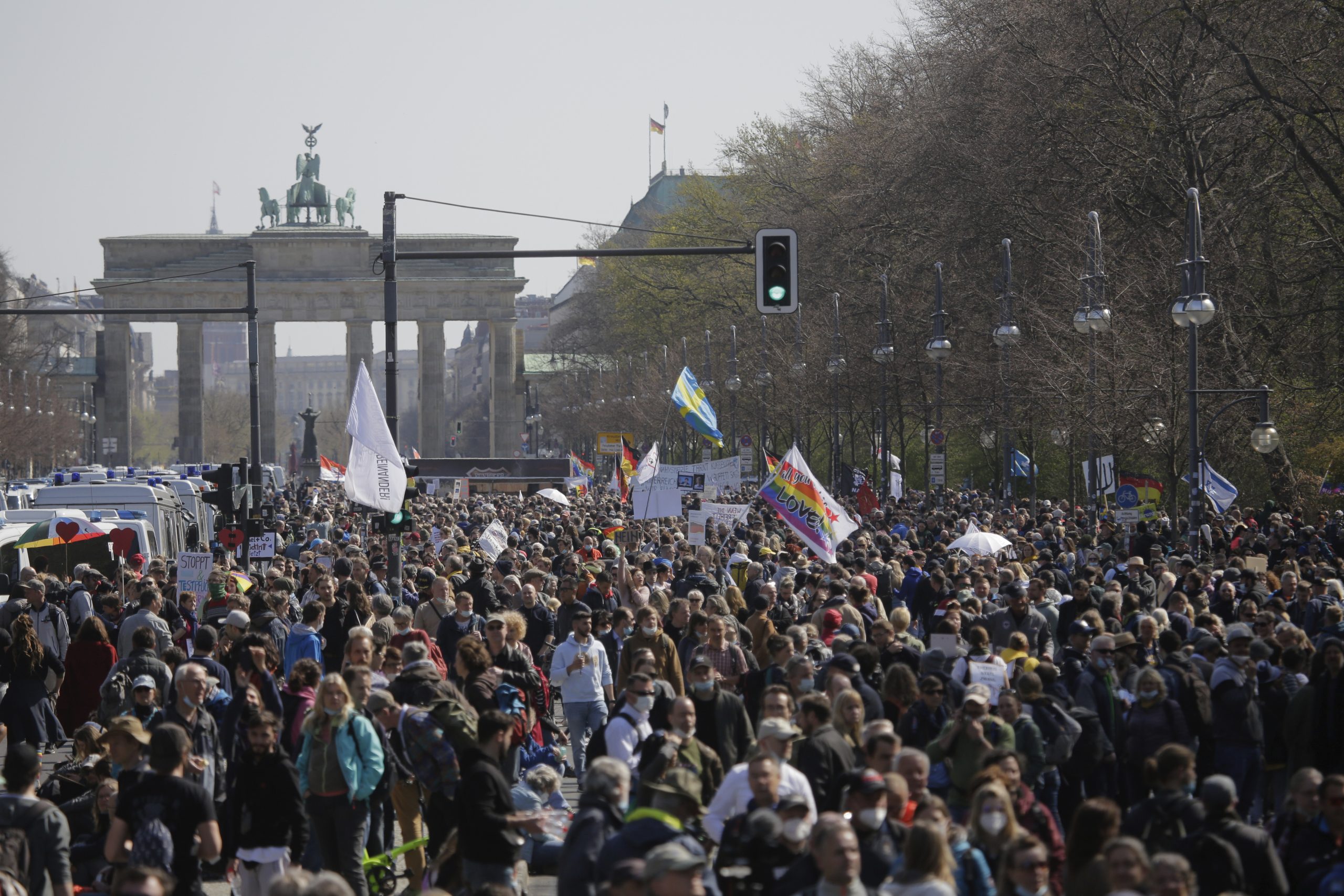 Politiet i Berlin stanser en stor demonstrasjon mot koronarestriksjonene. Samtidig skal Forbundsdagen stemme over å gi regjeringen utvidede fullmakter.