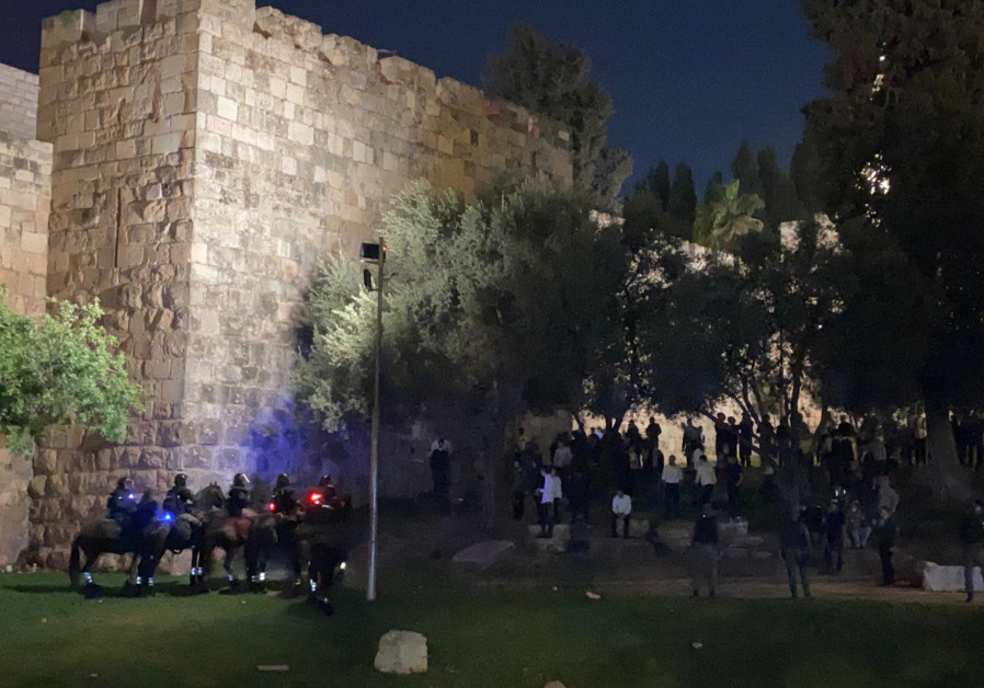 Palestinere og jøder tørnet natt til fredag sammen i Jerusalems Gamleby og politiet hadde sitt svare strev med å holde partene fra hverandre.