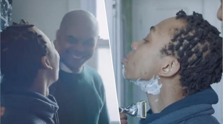 Koselig stemning mens en mann lærer sin biologiske datter å barbere seg. Skjermdump video/Gillette