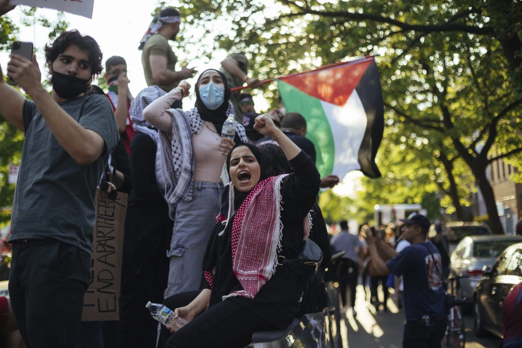 Palestina-aktivister i New York, i dette tilfelle uten synlige nazi-slagord. Foto: AP Photo/Kevin Hagen.