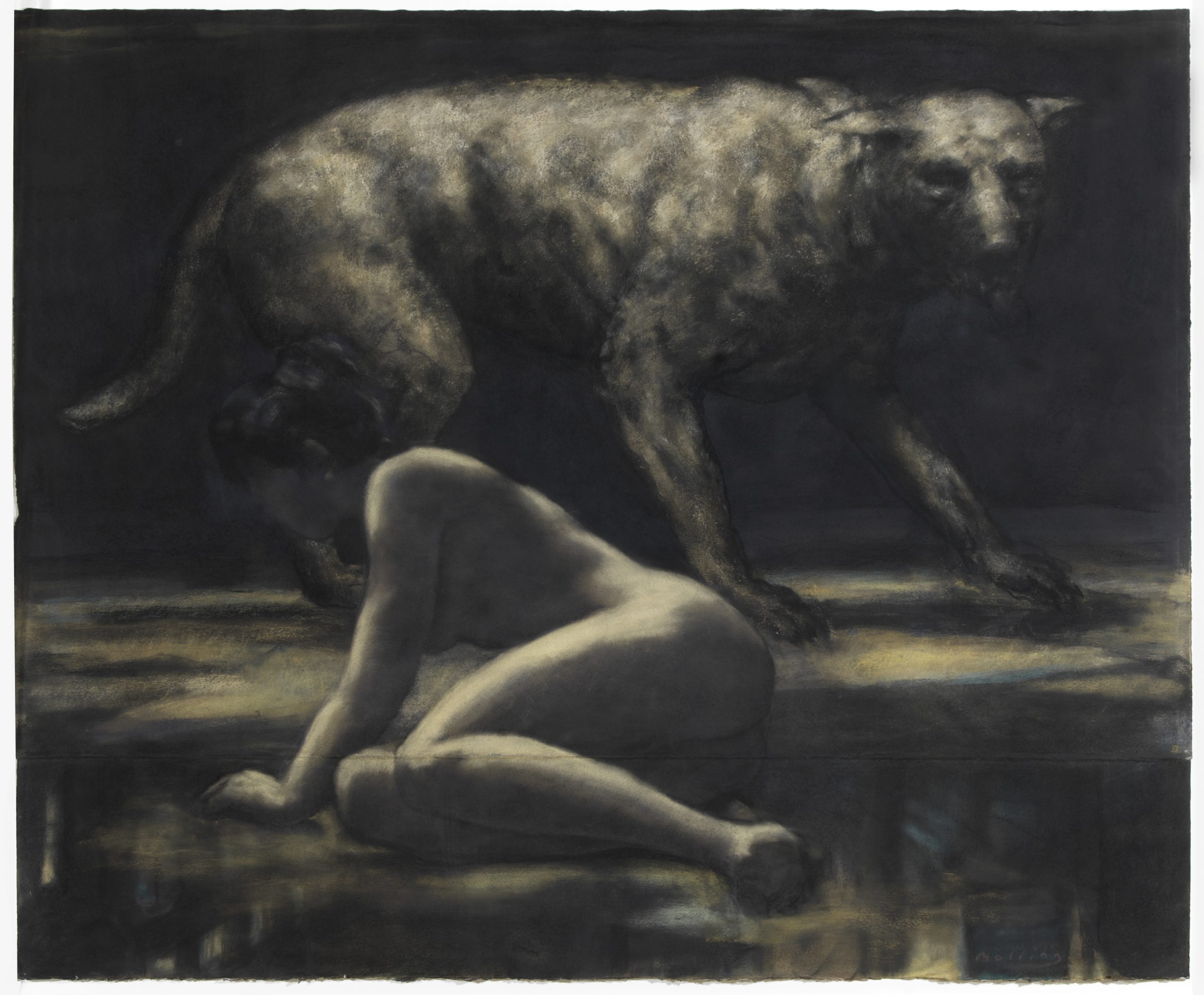 På Bollings utstilling i Galleri K for tre år siden så vi en sterkere betoning av den symbolistiske virkelighetsoppfatningen og tidstypiske åpenheten for andre billedtradisjoner enn de europeiske. Det gjelder særlig japansk billedkultur, men blikket vendes også mot egen kulturhistorie der antikke myter og kristen symbolikk har gitt kreative impulser. I Haugar-mønstringen møter vi en rekke slike mytologiske og symbolske motiver. De er ikke lett tilgjengelige, selv om vi kan identifisere figurer og handling, men vi aner at motivene prøver å åpne for et dypere eksistensnivå.