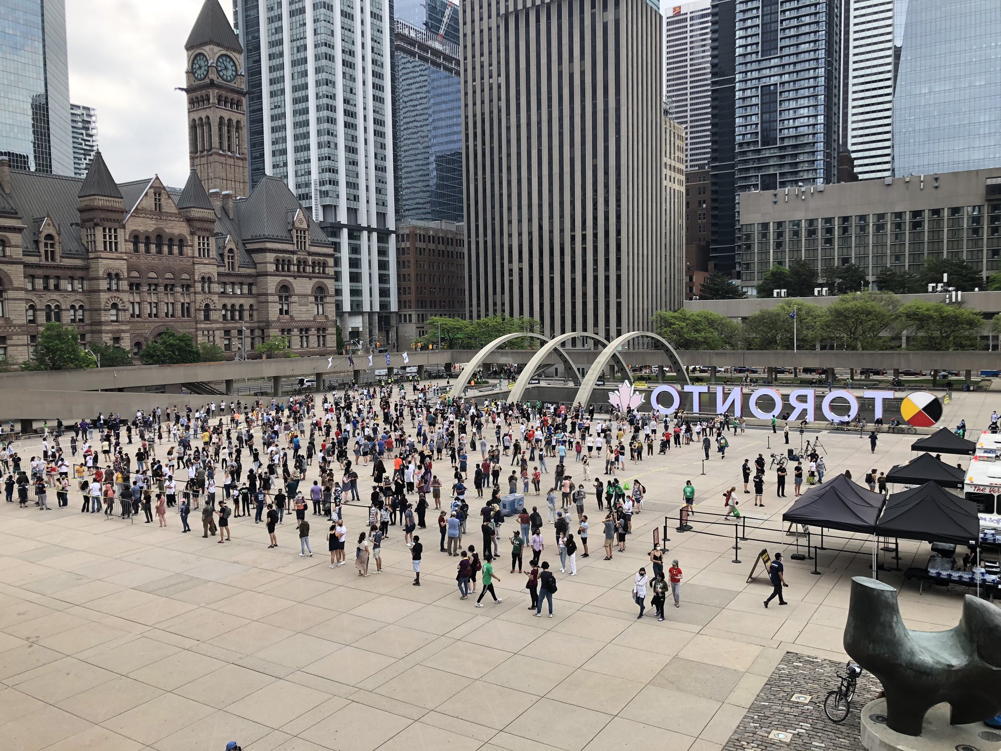 God stemning på vaksinesenter for barn i Toronto, Canada. Skjermdump Twitter/Joe Cressy