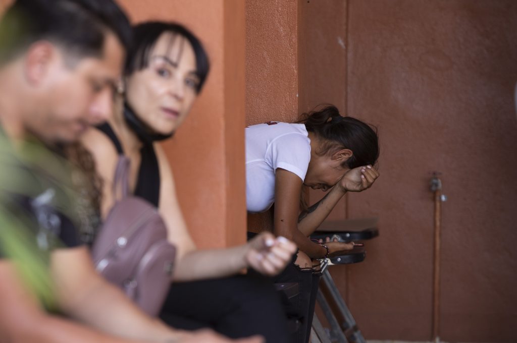 Friends mourn during the wake of mayoral candidate Alma Barragan in Moroleon, Mexico, Wednesday, May 26, 2021. Barragan was killed Tuesday while campaigning for the mayorship of the city of Moroleon, in violence-plagued Guanajuato state. (AP Photo/Armando Solis) Frykt, sjokk og fortvilelse preger befolkningen etter at Alam Barragan ble drept. De blir kuet. Selv ikke kvinner er beskyttet.