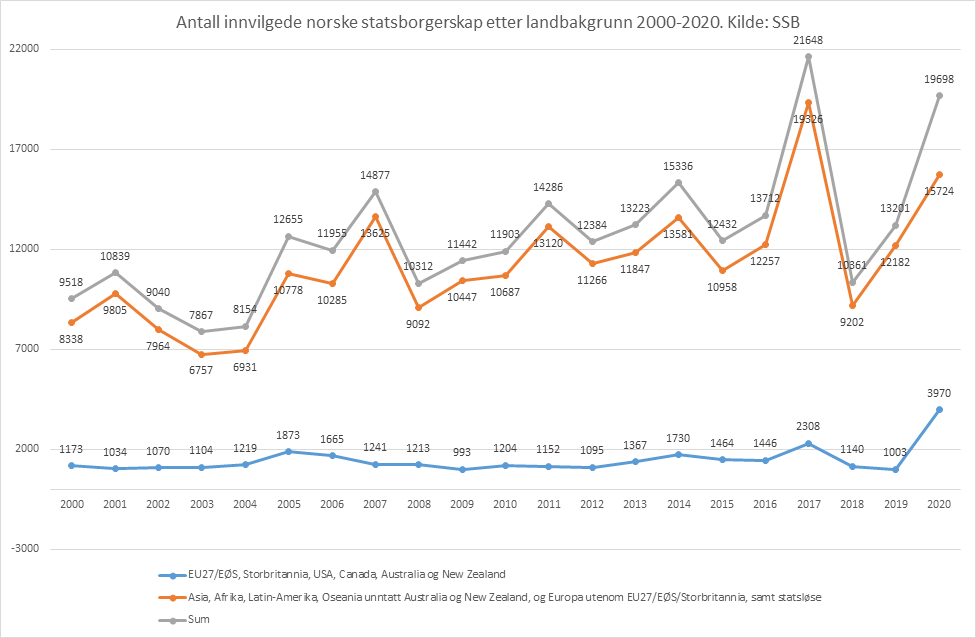 Jon Helgheim og Siv Jensen fra FrP ville stramme inn integreringsloven etter dansk mønster, og foreslo endringer i kravene for å få innvilget statsborgerskap. Målsetningen var en mer bærekraftig politikk for innvilgelse av nye statsborgerskap. Forslaget ble nedstemt i kommunal- og forvaltningskomiteen.