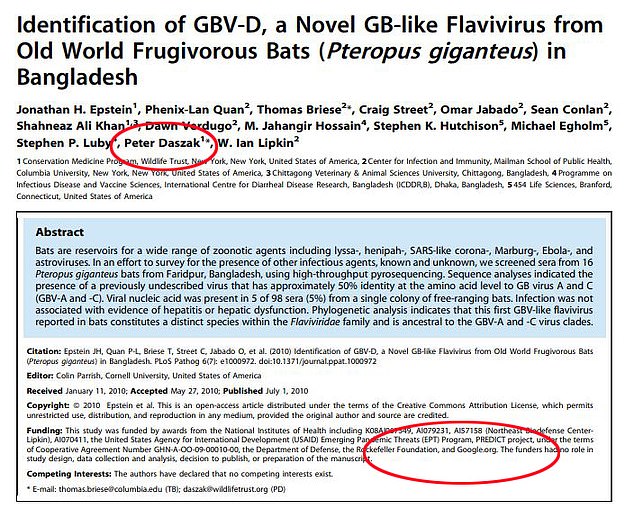 ‘People like Peter Daszak, people like (Dr Anthony) Fauci himself who, of course, initiated the work that Daszak then sent to the Wuhan Institute of Virology to make bat coronaviruses more airborne and more transmissible and more infectious to the human respiratory system – (a theory) we now know as the most likely origin of the pandemic.