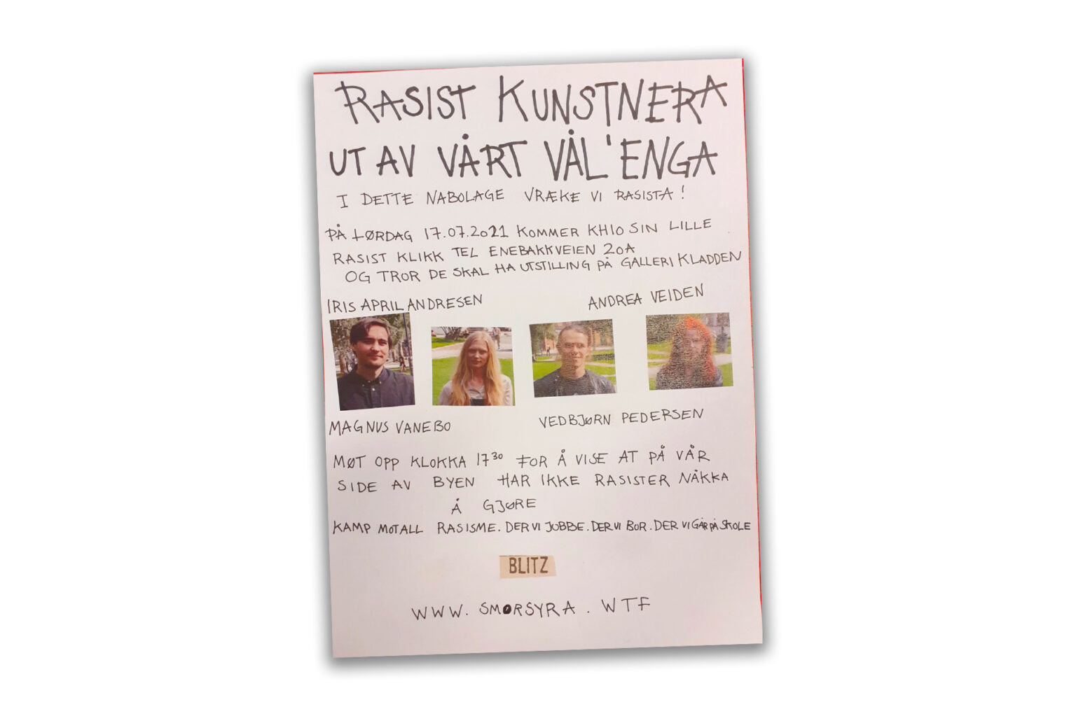 I dag åpner utstillingen «How Shameful» på Galleri Kladden i Oslo. Blitz varsler demonstrasjon mot det de kaller «rasist kunstnera». Politiet stiller opp for å sørge for kunstnernes sikkerhet.