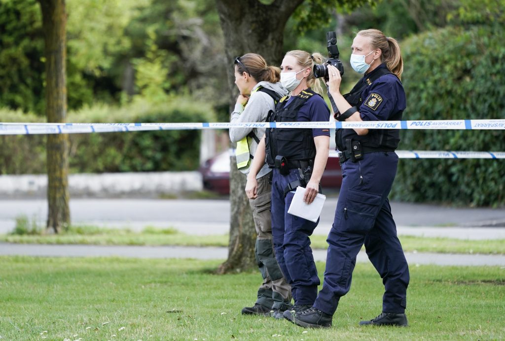 To yngre menn og en kvinne i 60-årene ble skutt midt på lyse dagen i Kristianstad i Sverige i dag. De behandles på sykehus for alvorlige skader. Tre menn er pågrepet.