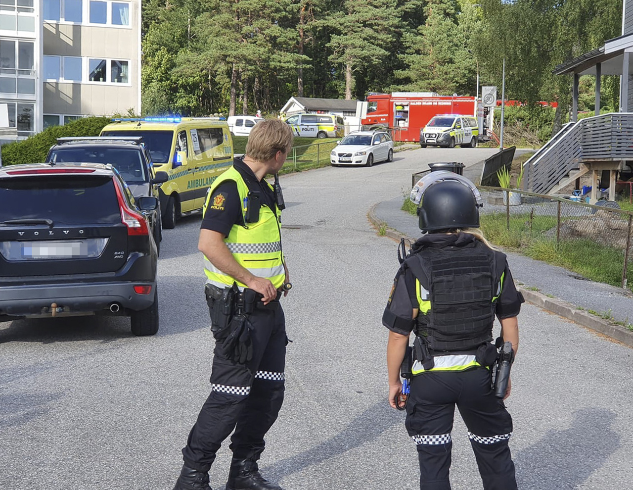 Vitner meldte at det har vært hørt en eksplosjon i forkant av en brann i en boligblokk i Halden. En mann er pågrepet. Bombegruppen og bevæpnet politi på åstedet.
