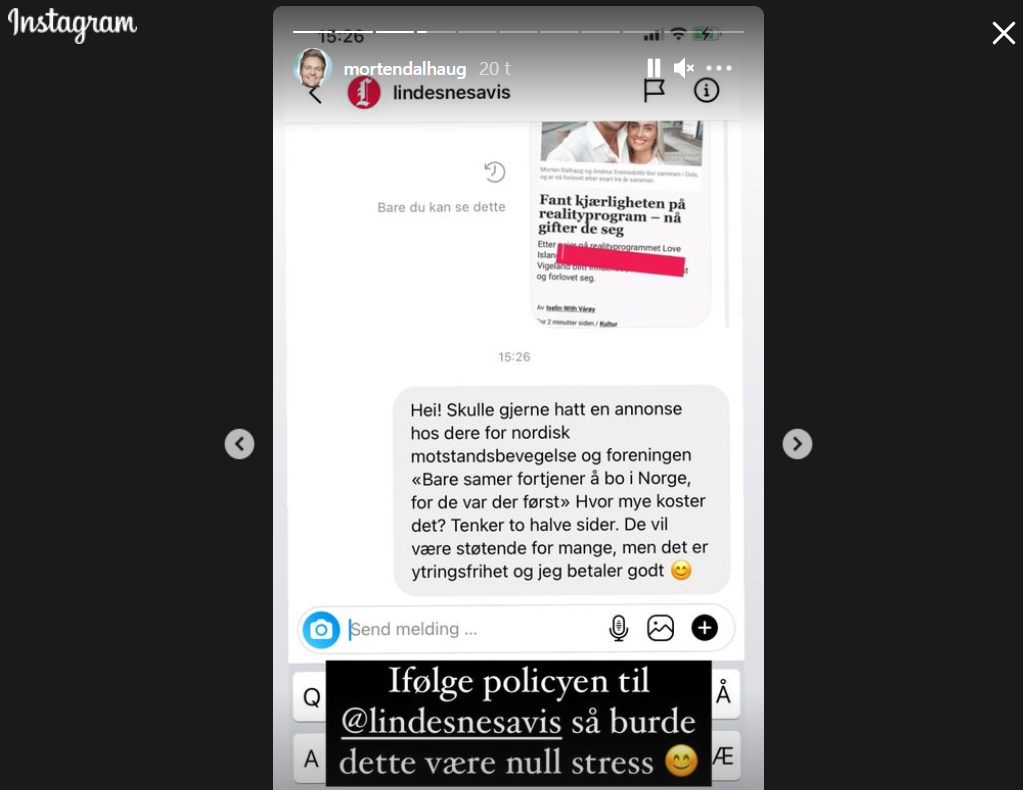 Samboerparet og «influenserne» Morten Dalhaug og Andrea Sveinsdottir fikk en rolig lørdags morgen ødelagt av en annonse som var kritisk til Pride. Nå frykter de at avisannonsen «kan dytte skeiv ungdom lengre inn i skapet».
