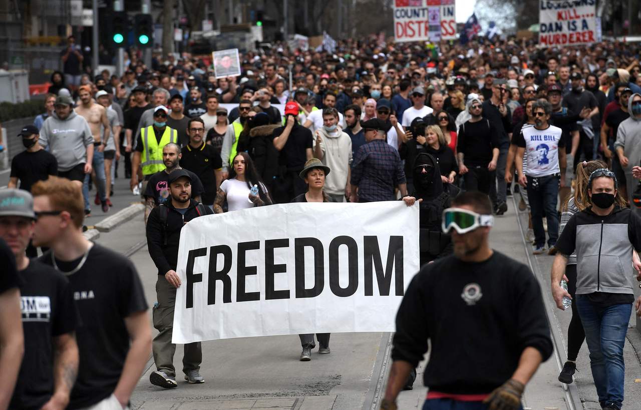 Lørdagens demonstrasjon mot nedstengningene i Melbourne var ifølge politiet de voldeligste man har sett på 20 år. Ni politifolk måtte få behandling på sykehus. Politiet sier de skjøt med gummikuler mot demonstrantene for å beskytte seg selv.