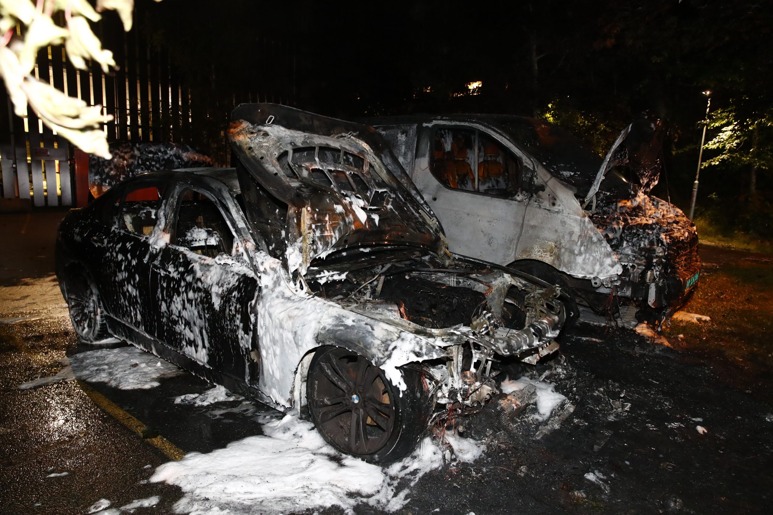 Det brant natt til onsdag i to personbiler og en moped i Thomas Heftyes gate på Frogner i Oslo. Politiet tror brannen er påsatt og leter etter flere personer.