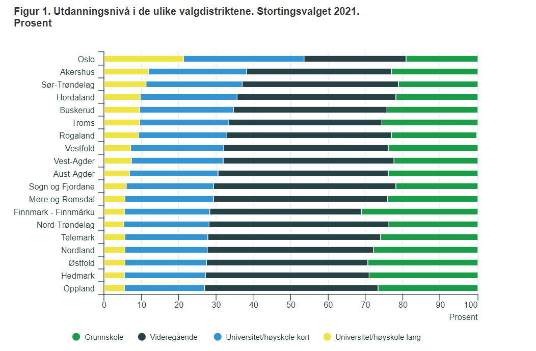 Statistisk Sentralbyrås oversikt over velgermassen ved årets valg viser at over halvparten av Oslos velgere har høyere utdanning, mens bare en fjerdedel av velgerne i Oppland har det samme. Enkel Erasmus-logikk forteller oss at høyere utdanning ikke er noen garanti for kloke valg og beslutninger.