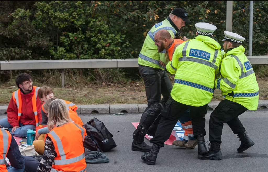 M25 ble blant annet sperret ved at aktivistene fra IB limte hendene sine fast til asfalten. Bilister, mange på vei til jobb, ble forsinket i to og en halv time. Nå raser både bilister og politikere mot et woke politi som virket mer opptatt av at aktivistene ikke led noen nød enn av å rydde veien slik at bilistene kunne komme frem.