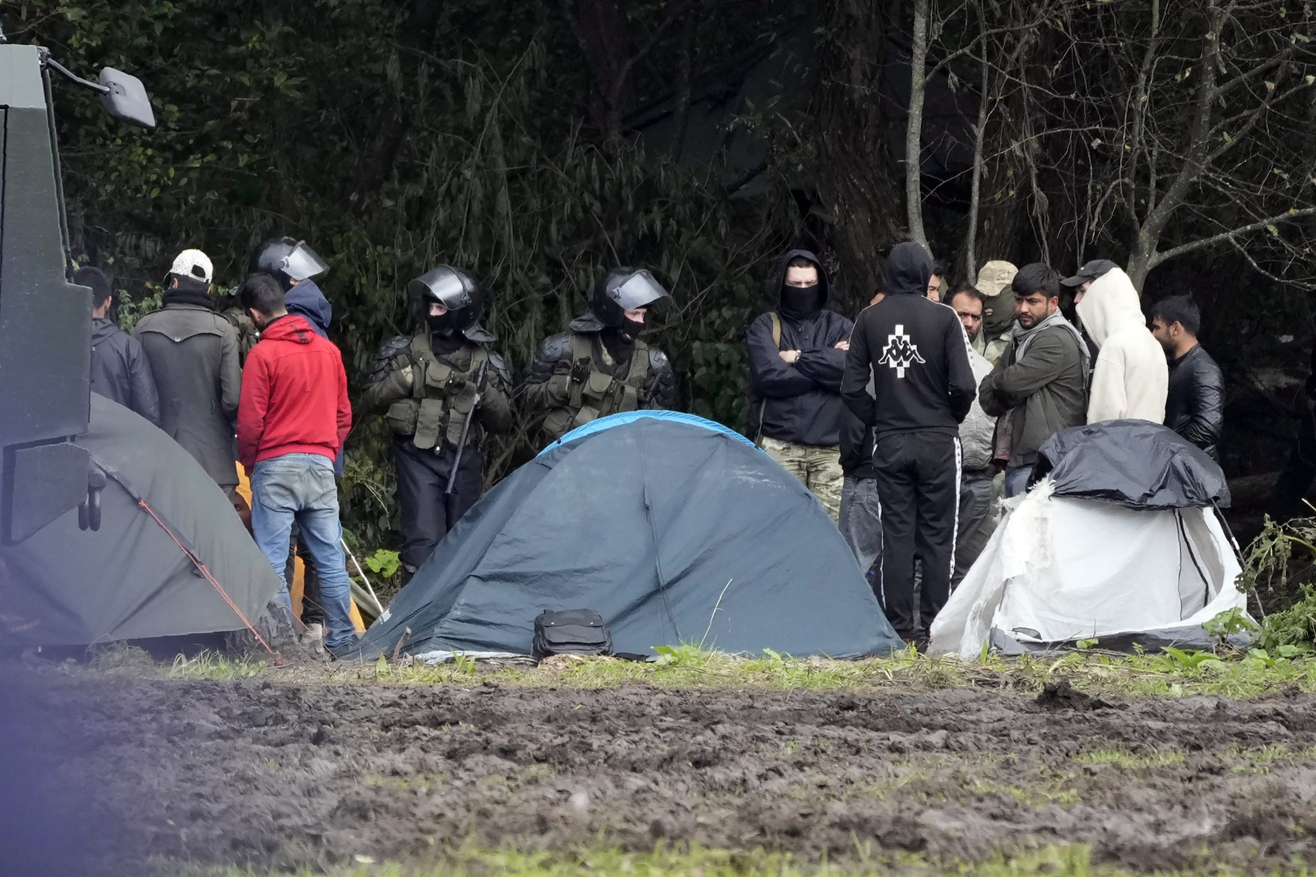 Polsk politi har oppdaget migranter som har tatt seg over grensen fra Hviterussland ikke langt fra Usnarz Gorny den 1. september 2021. Foto: Czarek Sokolowski / AP / NTB.