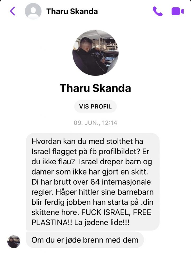 «Håper Hitler sine barnebarn blir ferdig med jobben han starta på, din skitne hore», lød en del av meldingen som dukket opp i innboksen en dag i juni. Det er verken «hatefullt» eller «hensynsløst», ifølge politiet, som forsøkte å snakke meg ut av anmeldelse.