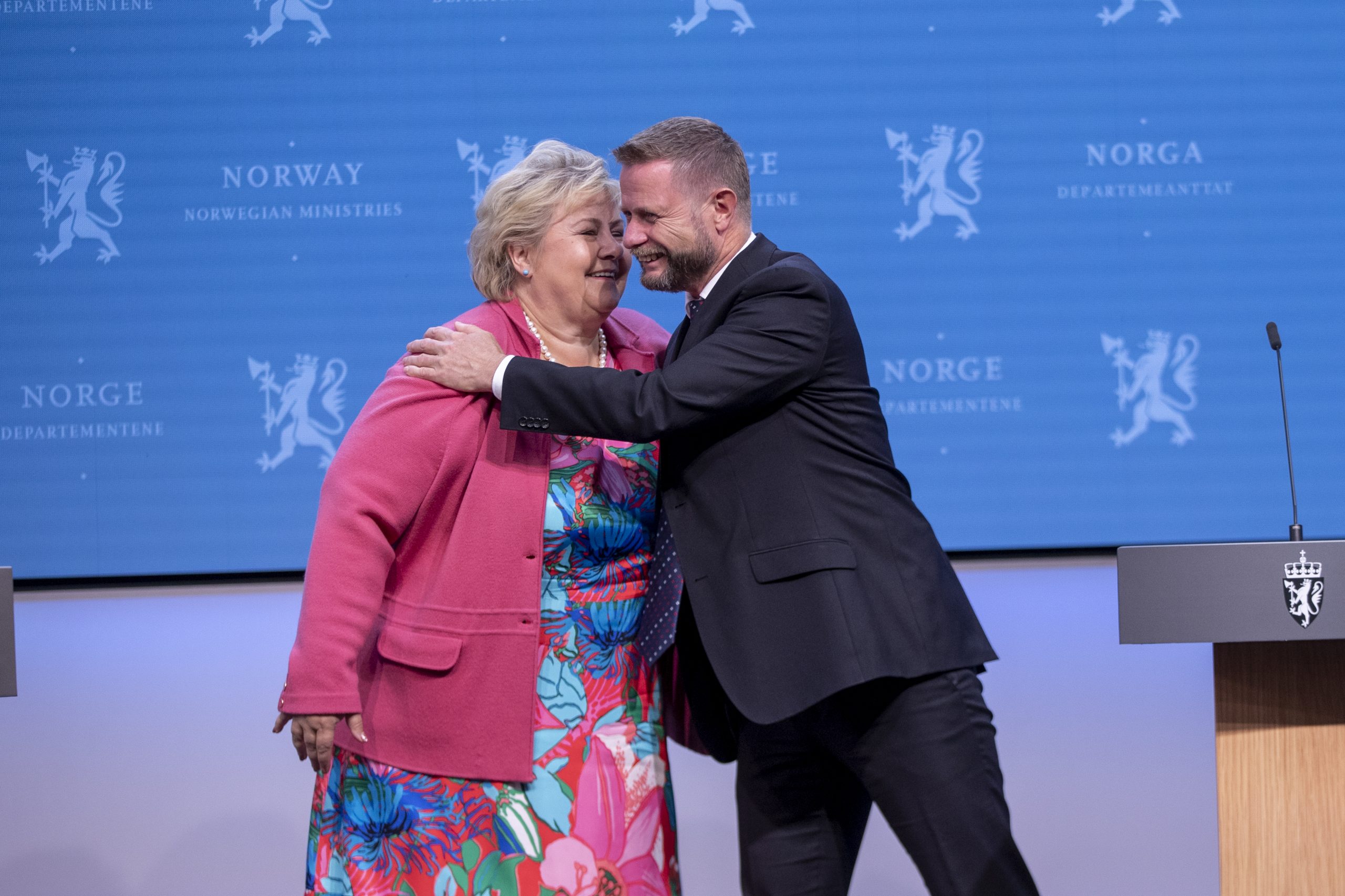 Erna og Bent klemmer hverandre på direkten og slipper tøylene for en stakket stund.