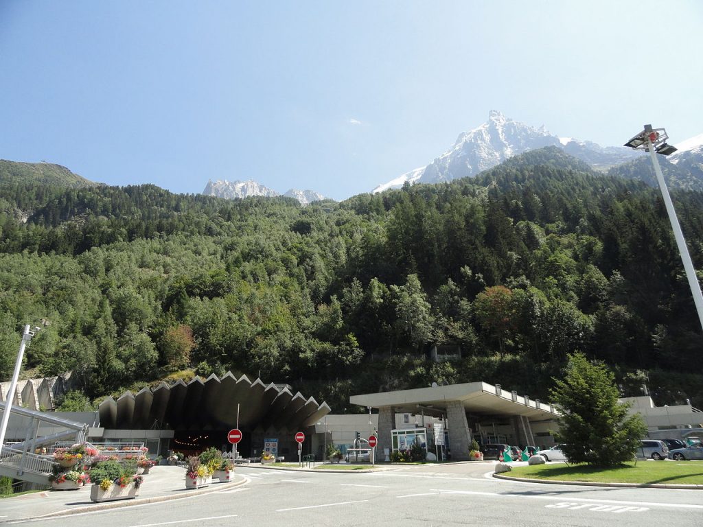 Åpningen på fransk side av motorveitunnelen under Mont Blanc. Foto: Kristoferb / Wikimedia Commons.