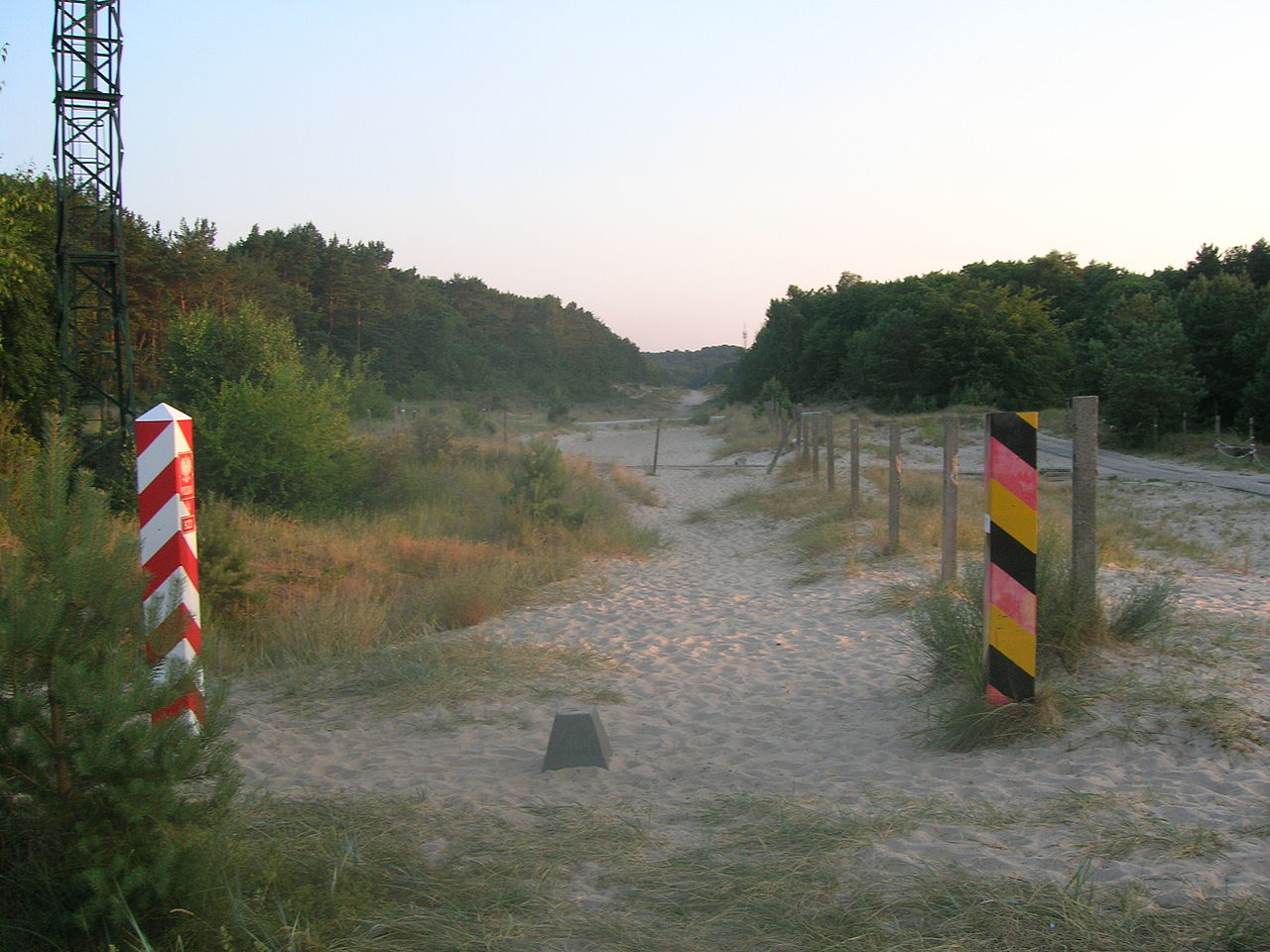 Fra den polsk-tyske grensen mellom Świnoujście i Pomorze Zachodnie og Ahlbeck i Mecklenburg-Vorpommern. Denne er ikke vanskelig å krysse. Foto: Kapsuglan / Wikimedia Commons.