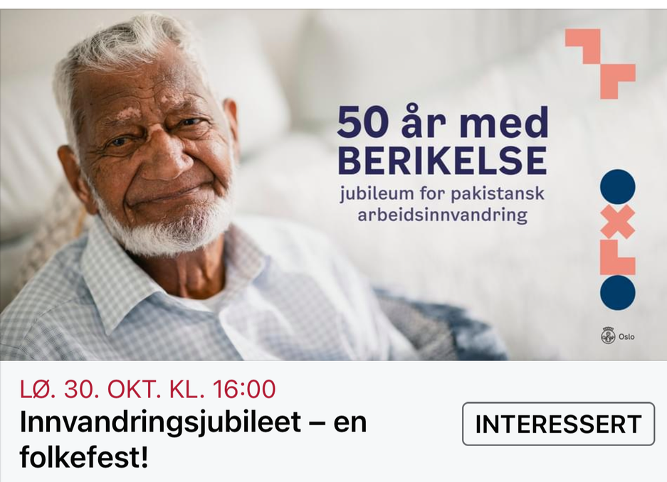 Den 30. oktober inviterer Oslo kommune til feiring av pakistanernes ankomst til Norge, og temaet for festen er berikelse.