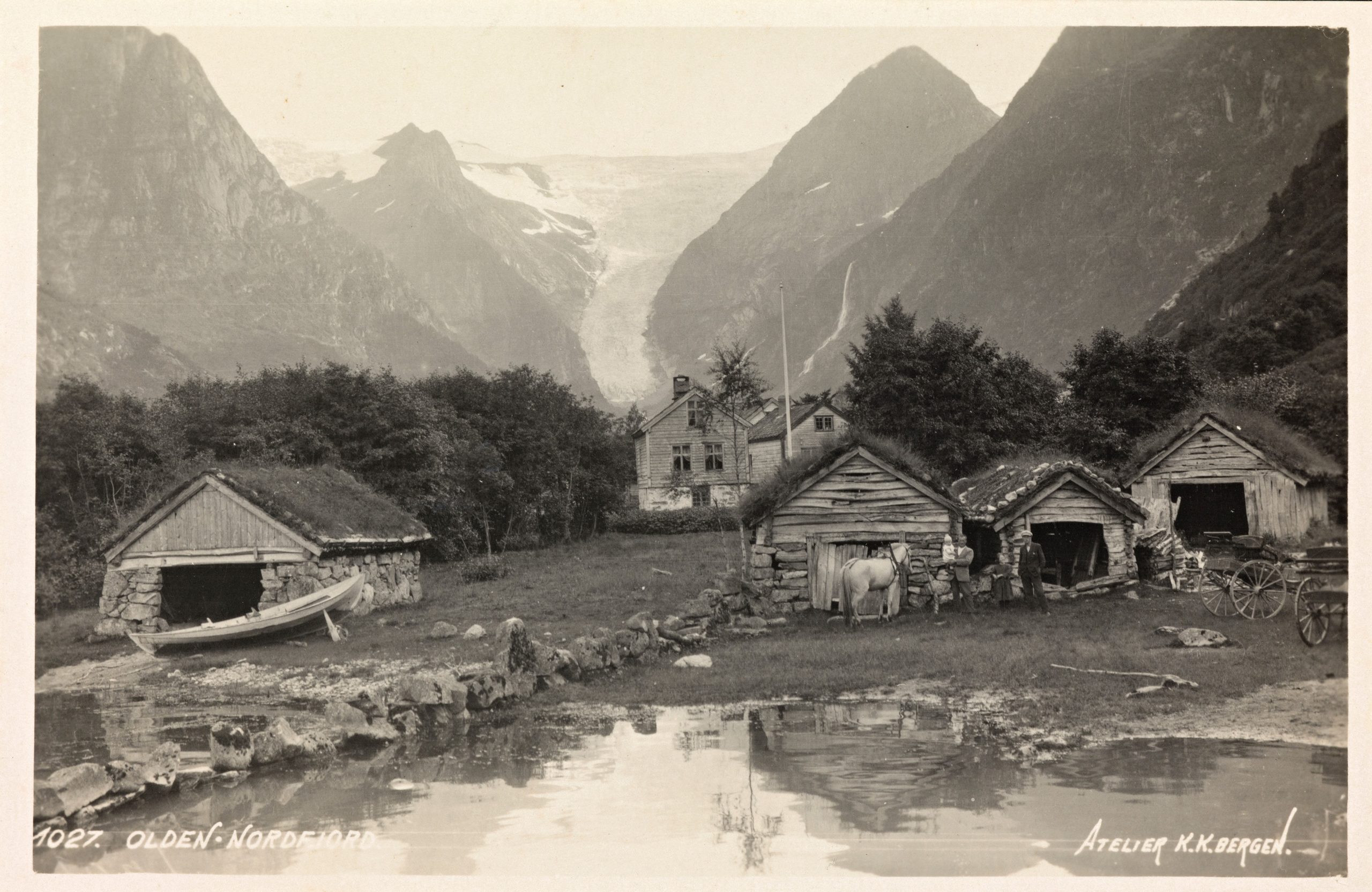 Atelier K.K, Bergen, sølvgelatinkopi i Nasjonalbiblioteket. Knud Knudsen (1832-1915) sluttet å fotografere rundt 1900, og overlot sitt firma Atelier K.K. til nevøen Knut Digernæs (1862-1949), som hadde vært hans assistent siden 1884. Firmaet var i drift helt til 1971. I bakgrunnen kan vi se en arm av Jostedalsbréen.