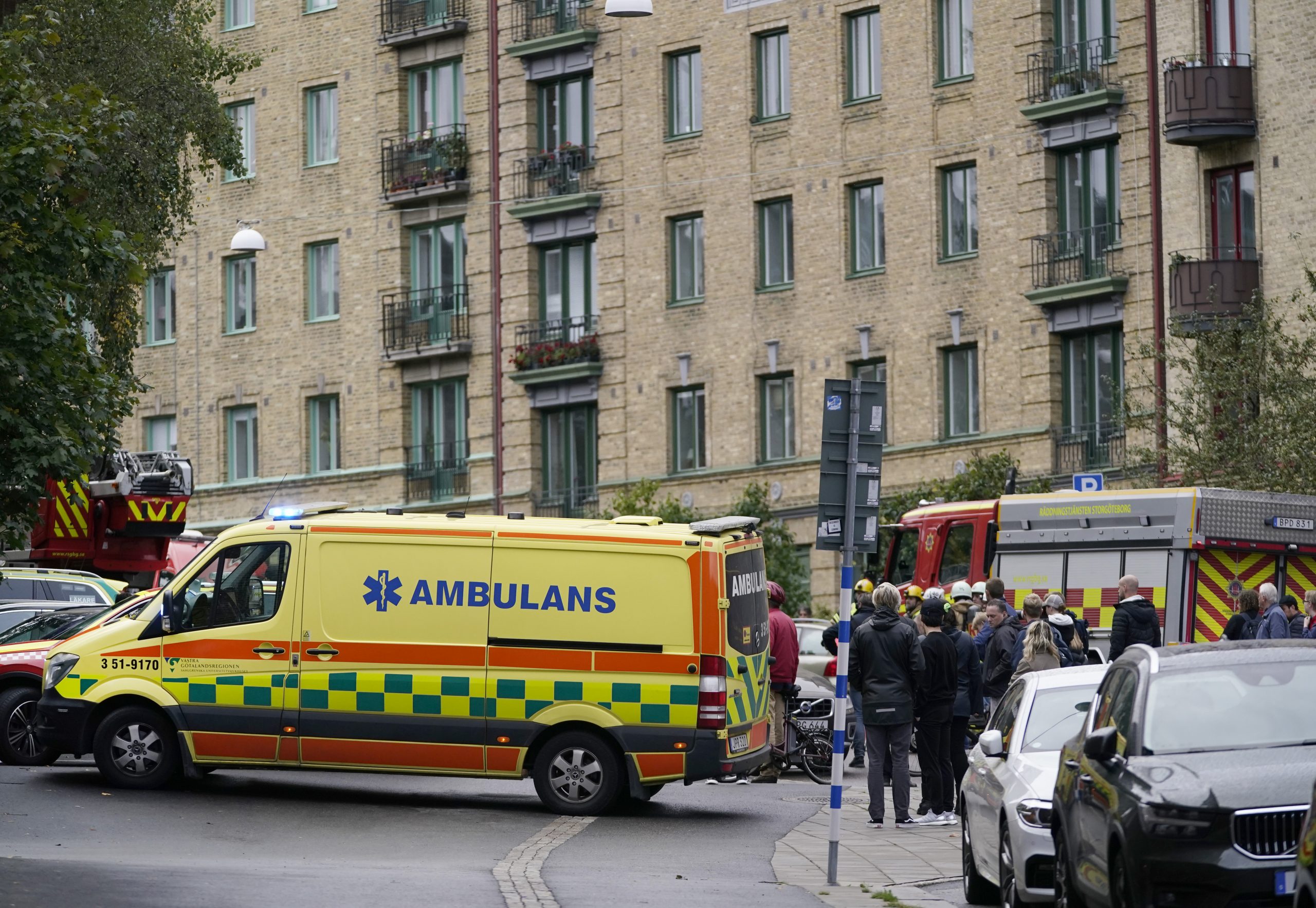 Svensk politi og øvrige nødetater ved en sprengstoff-situasjon i Olivedal i Göteborg. Foto: Björn Larsson Rosvall/TT / NTB