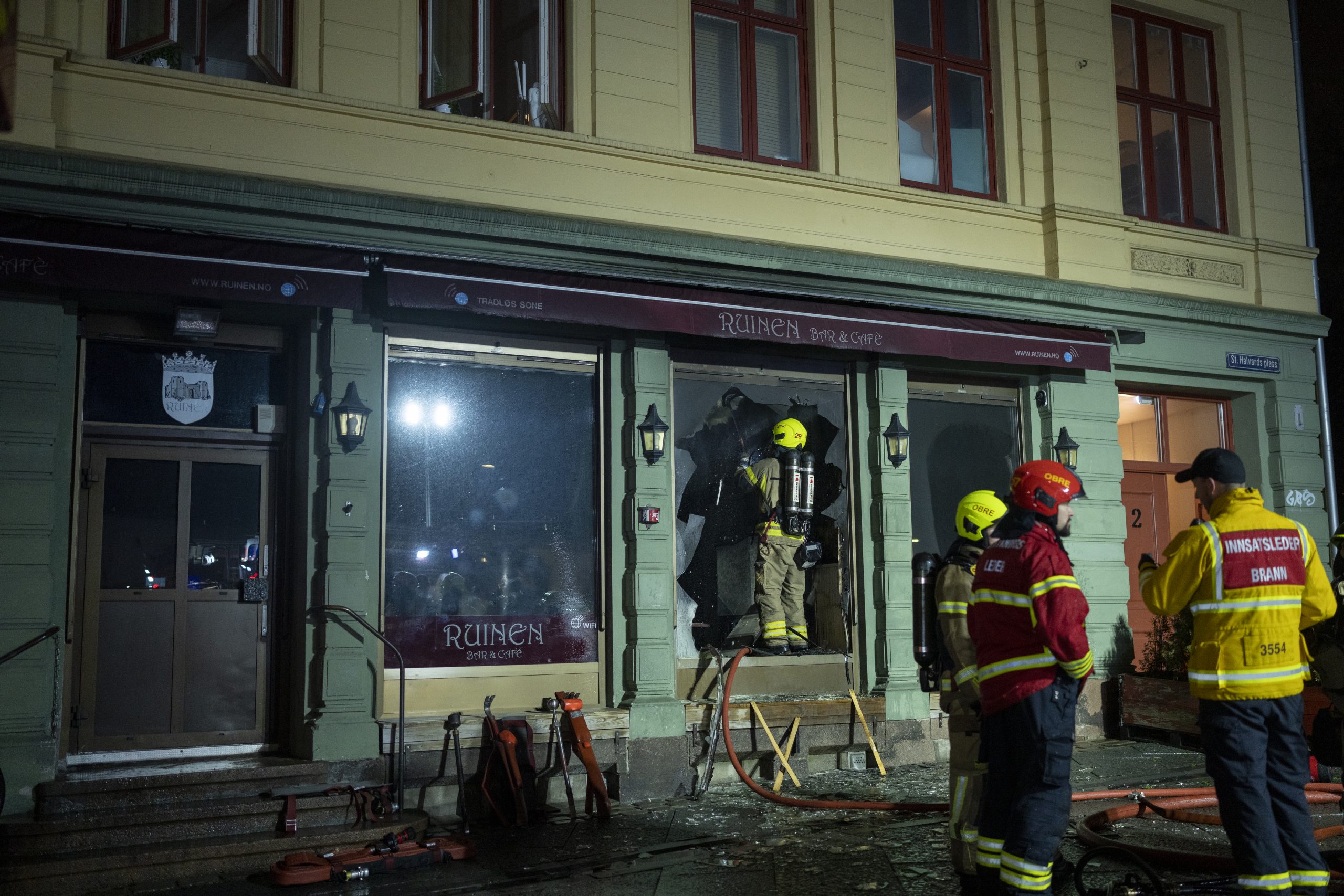 Politiet mistenker at brannen i et kafélokale i en bygård i Gamlebyen ble påsatt, og ser alvorlig på saken. To menn ble sett løpe fra stedet.