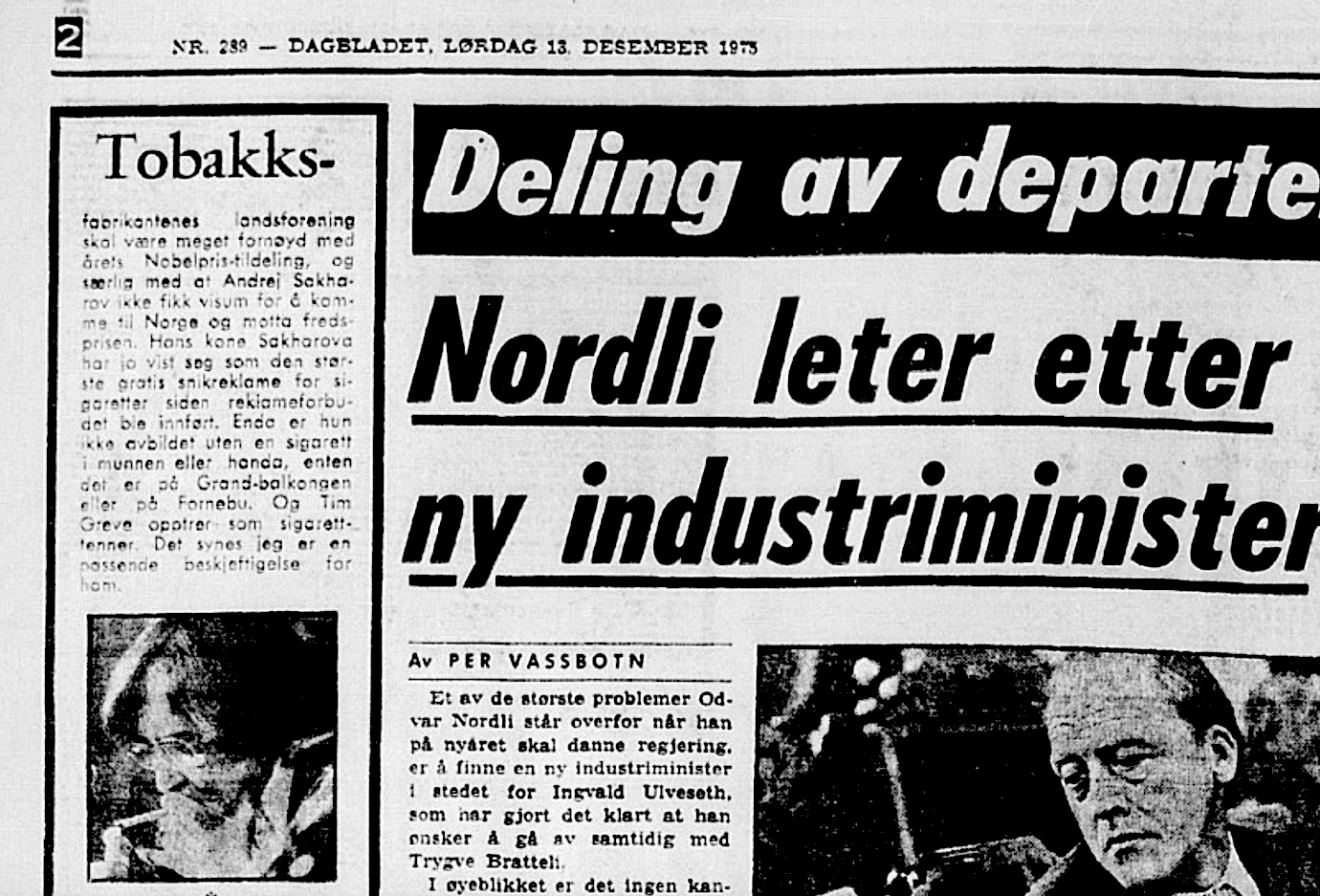 Det kjedelige er at Dagbladets utgave lørdag 13. desember 1975 støtter Mitrokhins versjon – ikke Vassbotns. Den som studerer avisens side 2 og 3, som var viet politikk, vil finne at signaturen Crotale over en hel spalte skriver følgende: «Tobakksfabrikantenes landsforening skal være meget fornøyd med årets Nobelprisutdeling, og særlig med at Andrej Sakharov ikke fikk visum til å komme til Norge og motta fredsprisen. Hans kone Sakharova har jo vist seg som den største gratis snikreklame for sigaretter siden reklameforbudet ble innført. Enda er hun ikke avbildet uten en sigarett i munnen eller handa, enten det er på Grand-balkongen eller på Fornebu. Og Tim Greve opptrer som sigarettenner. Det synes jeg er en passende beskjeftigelse for ham.»
