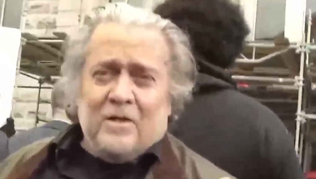 Steve Bannon: Is this us? I just want to say tell everybody it’s livestreamed on GETTR right now, everybody is watching in The War Room. We’re here today. I don’t want anybody to take their eye off the ball of what we do everyday. We have Hispanics coming on our side. African-Americans coming on our side. We’re taking down the Biden regime.