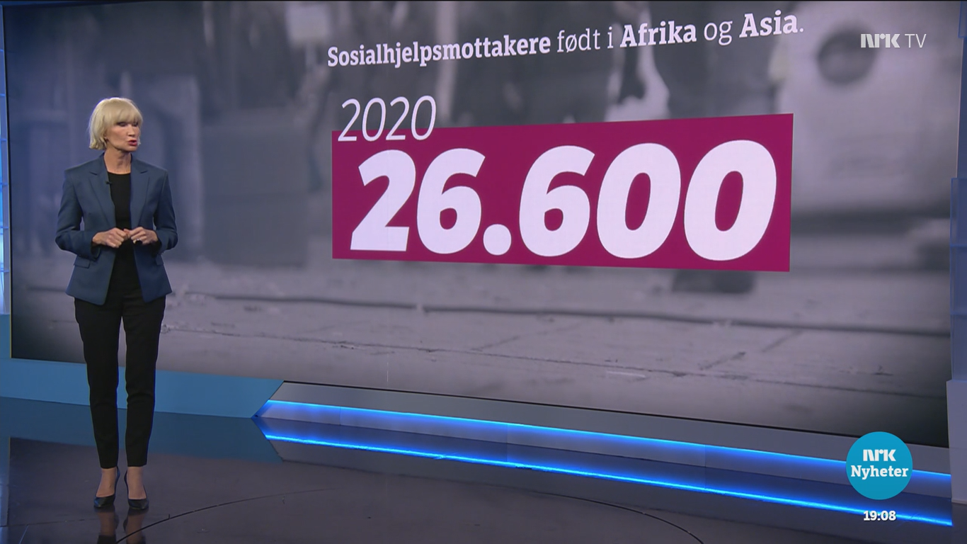 Det refereres til statistikk over mottakere av sosialhjelp i aldersgruppen 18–66 år fordelt på fødeland. Der er somaliere, eritreere og syrere øverst på listen. Tallene er ikke brutt ned på alder, botid, utdanning eller annet.
