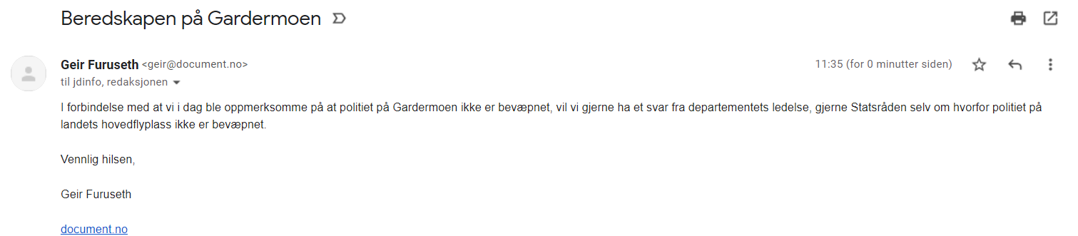 – Hvor er beredskapen? spør en pensjonert politimann som onsdag oppdaget at hans gamle kolleger på landets hovedflyplass ikke er bevæpnet. Godt spørsmål, sier vi.