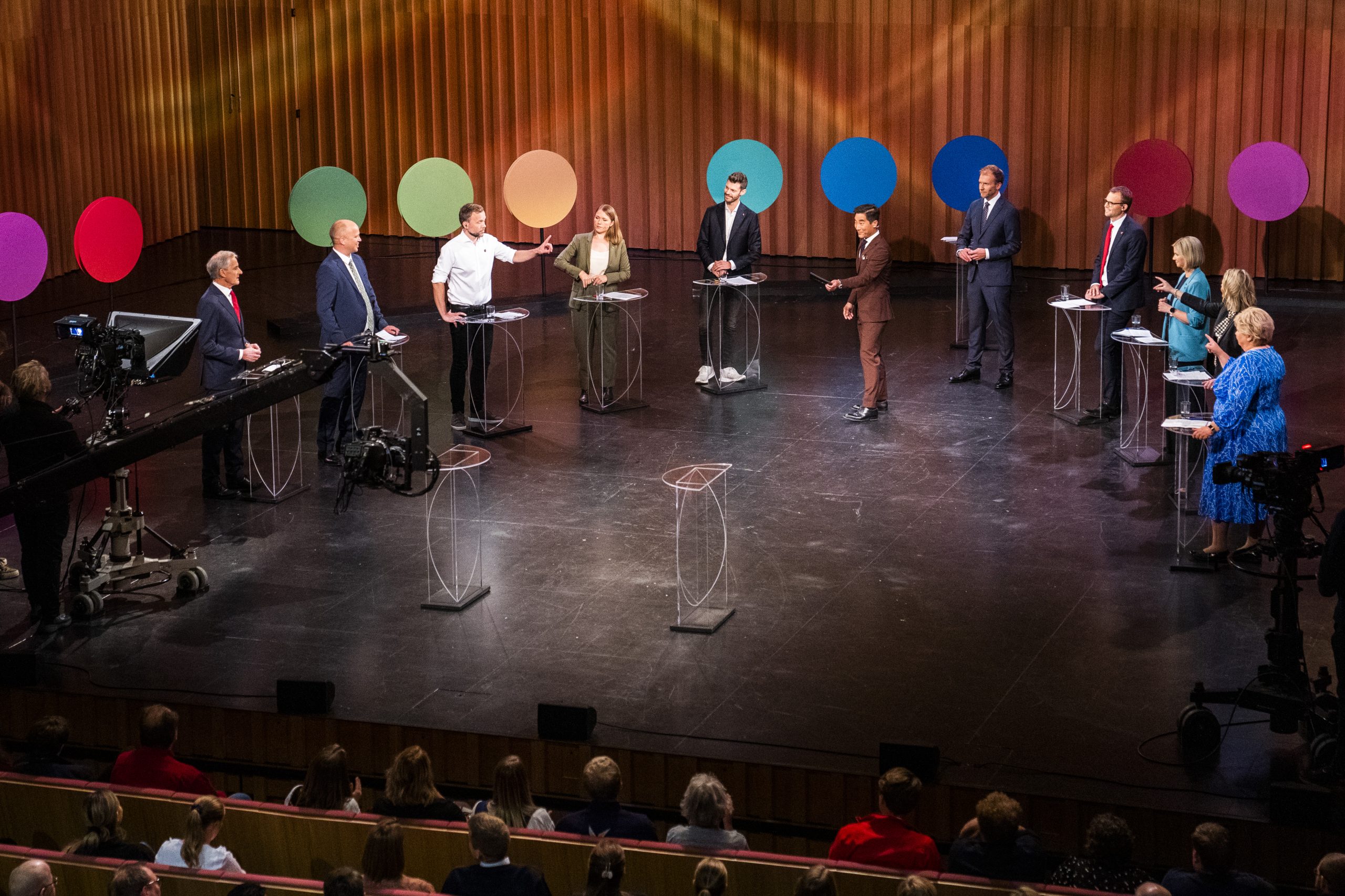 NRK arrangerer partilederdebatt i Bodø den 10. september 2021. Hvordan kom vi dit hen at disse her ble våre fremste menn og kvinner? Foto: Håkon Mosvold Larsen / NTB.