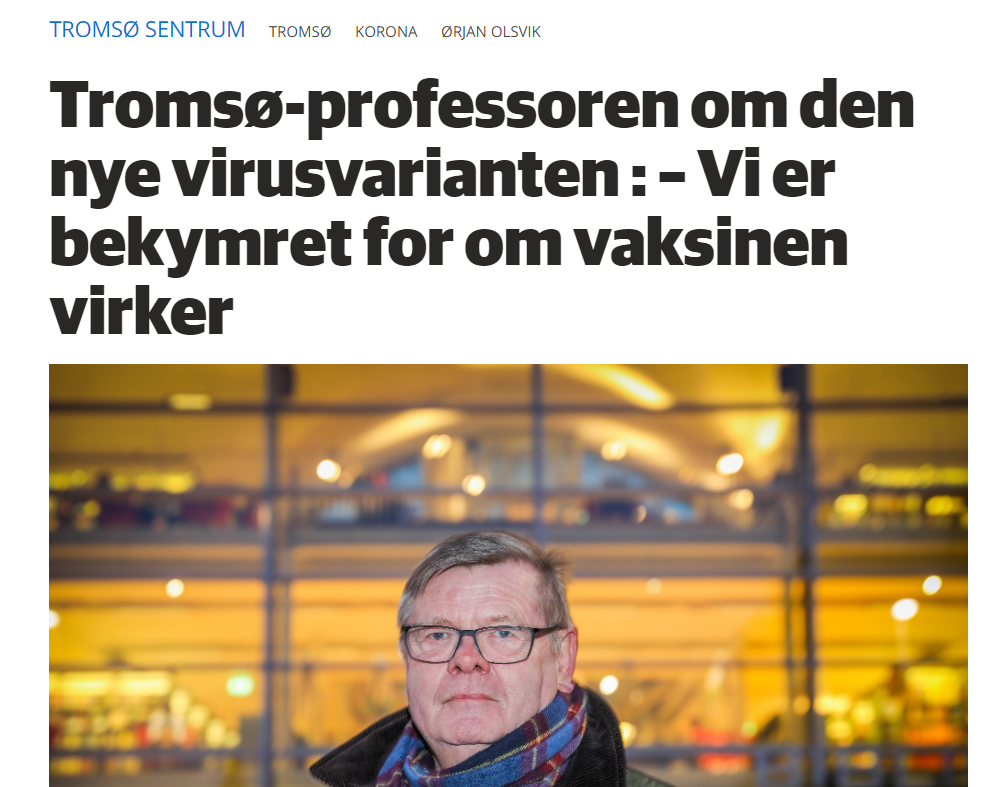– Det hjelper lite å gå rundt og være redde. Det blir det bare tull av. Men når varianten er på nå er listen til Verdens helseorganisasjon merket «bekymringsfull», så betyr det at vi finner den ubehagelig, sier Olsvik. (Nordlys)