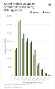 For de samme sammenslåtte alderskohortene teller antall registrert smittede kvinner og menn hhv. 88.903 kvinner og 95.524 menn.