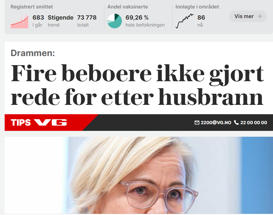Helseminister Ingvild Kjerkol (Ap) er bekymret, og vurderer strengere tiltak, skriver VG og NTB. Bare noen dager etter at regjeringen innførte nye tiltak fagmyndighetene selv hadde liten tiltro til effekten av, er kortere intervaller mellom vaksinedosene blant tiltakene som nå vurderes. Medienes og spesielt VGs rolle i panikken og forvirringen som nå brer seg, er ikke uproblematisk.