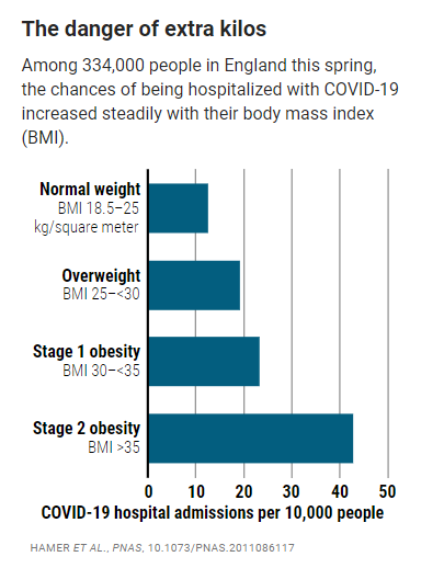«We didn’t understand early on what a major risk factor obesity was. … It’s not until more recently that we’ve realized the devastating impact of obesity, particularly in younger people,» says Anne Dixon, a physician-scientist who studies obesity and lung disease at the University of Vermont. That «may be one reason for the devastating impact of COVID-19 in the United States, where 40% of adults are obese.»