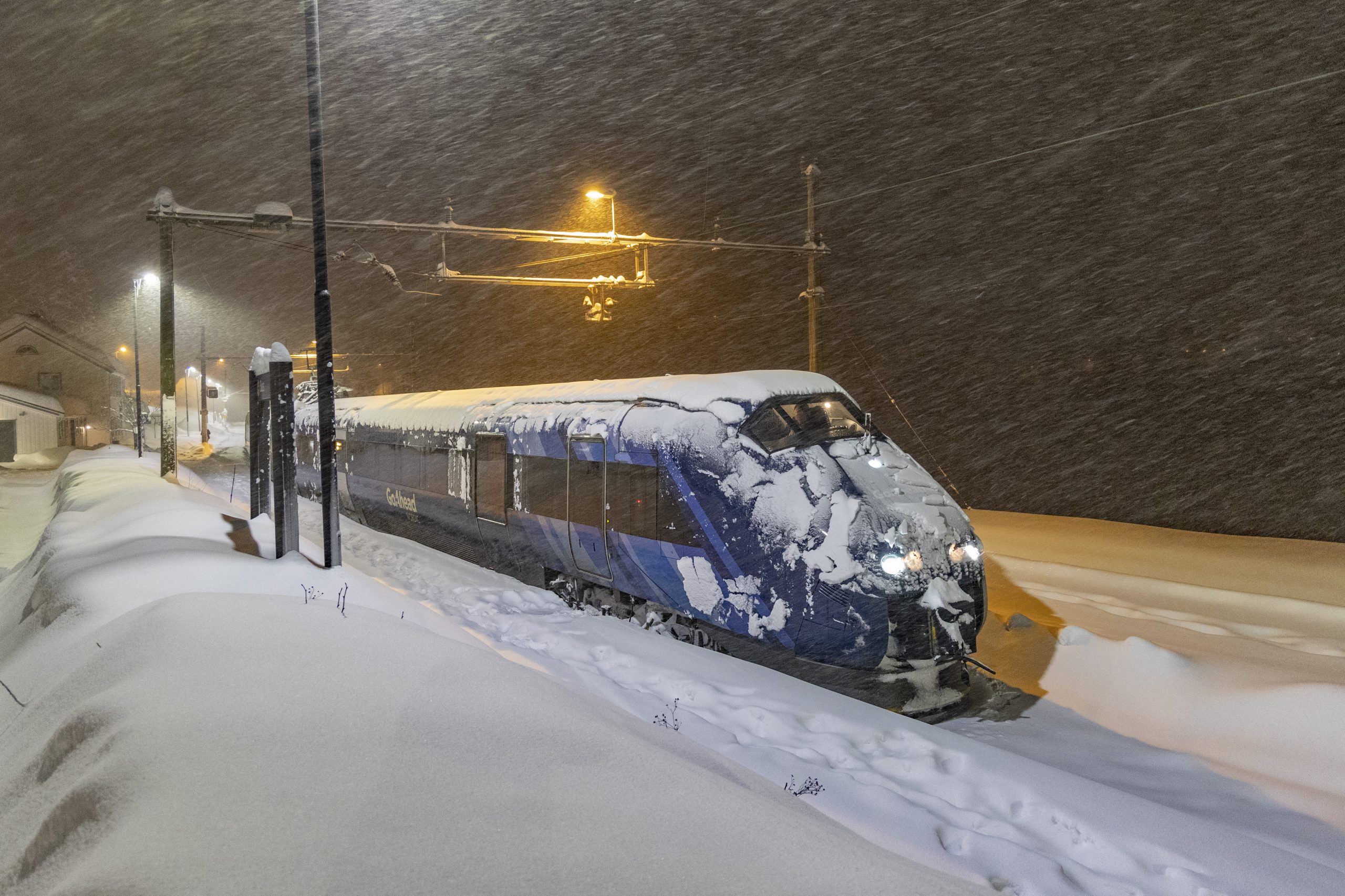 Også torsdag skaper snøen store problemer for Sørlandsbanen. Et godstog sperret strekningen mellom Gjerstad og Skorstøl. Det betyr forsinkelser.