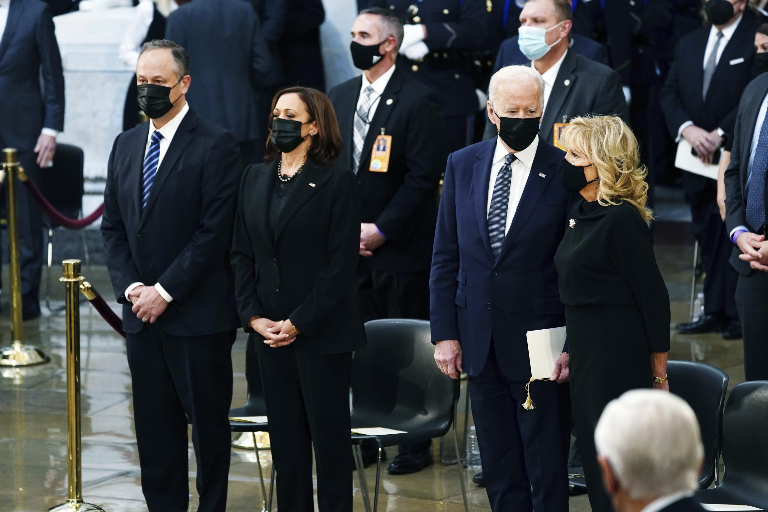 Under lit de parade for Bob Dole kommer Biden inn og setter seg ved siden av Kamala, men verdiger ikke henne et blikk. På toppen av det hele bytter han plass med Jill så han slipper å sitte ved siden av henne. En ørefik i full offentlighet.