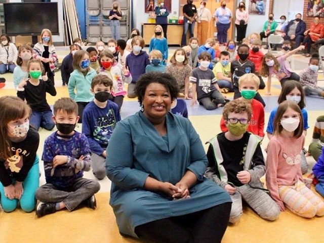 Stacey Abrams, som fortsatt ikke aksepterer at hun tapte guvernørvalget i Georgia, blir latterliggjort i sosiale medier etter at hun stilte opp for en barneskoleklasse i forbindelse med Black History Month. For Abrams var den eneste på bildet uten munnbind.