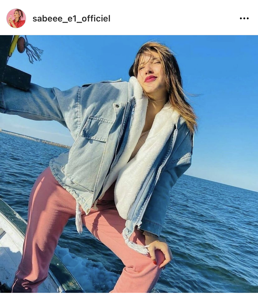 Sabee al Saidi poserer på båten hun illegalt tar seg over til Europa i. Foto: Stillbilde Instagram/Sabee