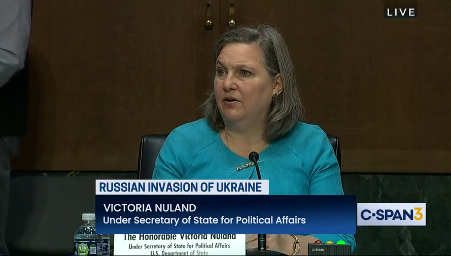 – Ukraina har biologiske forskningsanlegg som vi er ganske bekymret for at russiske styrker nå prøver å ta kontroll over. Vi jobber sammen med ukrainerne om hvordan de kan forhindre at noe av dette forskningsmaterialet faller i hendene på russiske styrker, svarte Victoria Nuland. (NTB)