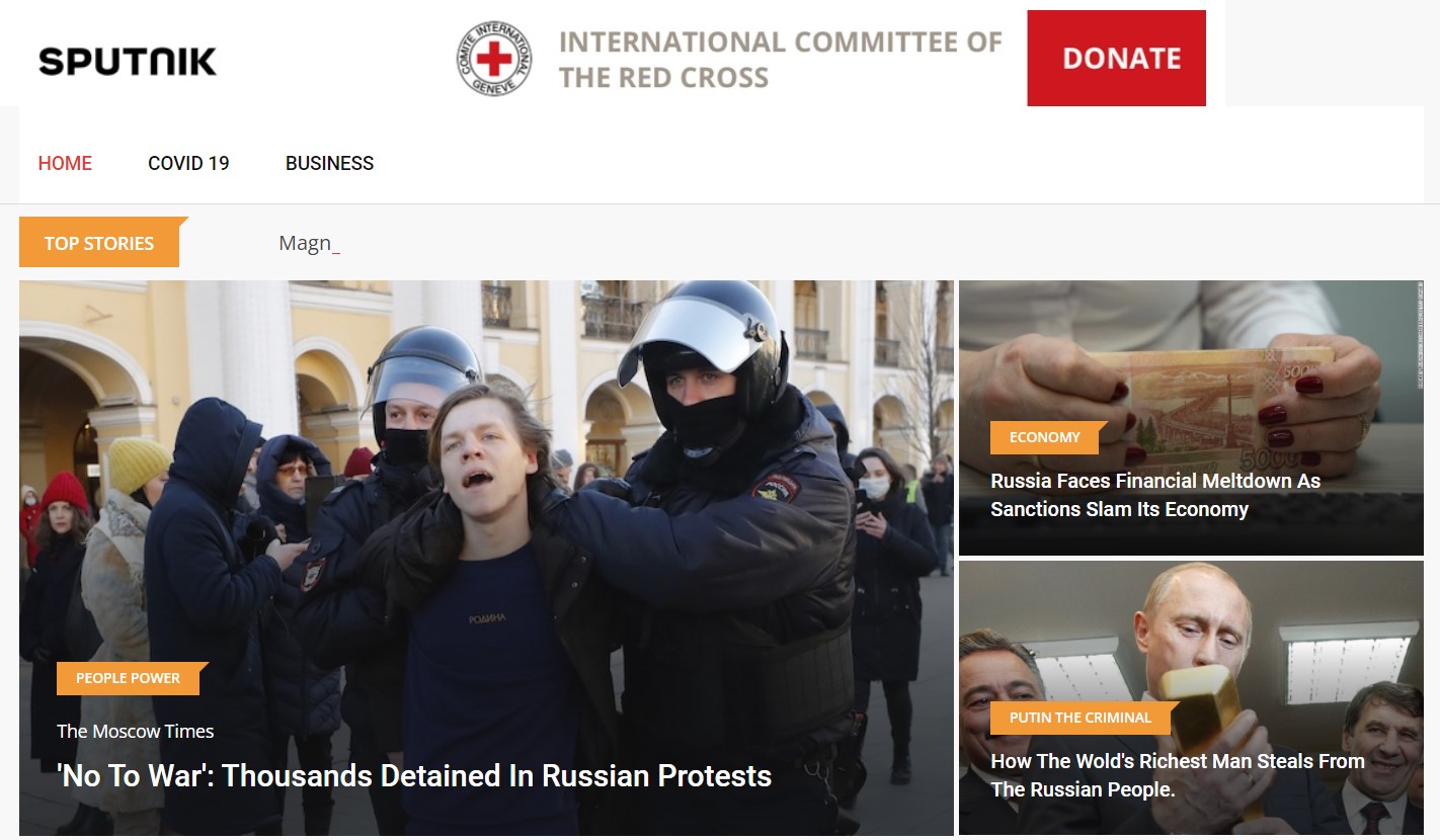 Sputnik.com topper fredag med et oppslag om at tusener er arrestert i demonstrasjoner mot krigen i Russland. Artikkelen er opprinnelig skrevet av Moscow Times.