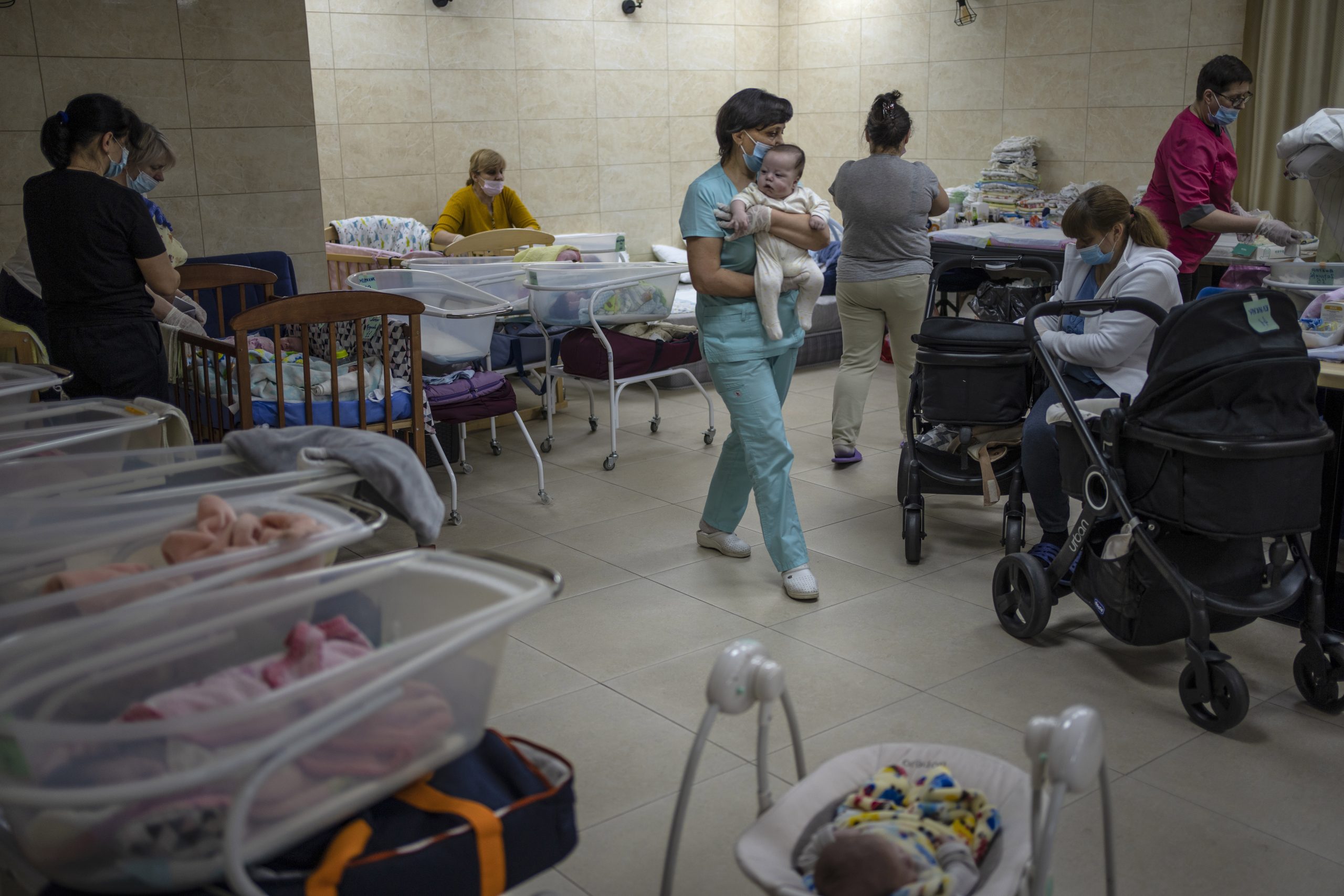 I et provisorisk tilfluktsrom i Ukrainas hovedstad venter minst 20 babyer født av surrogatmødre på sine utenlandske foreldre.