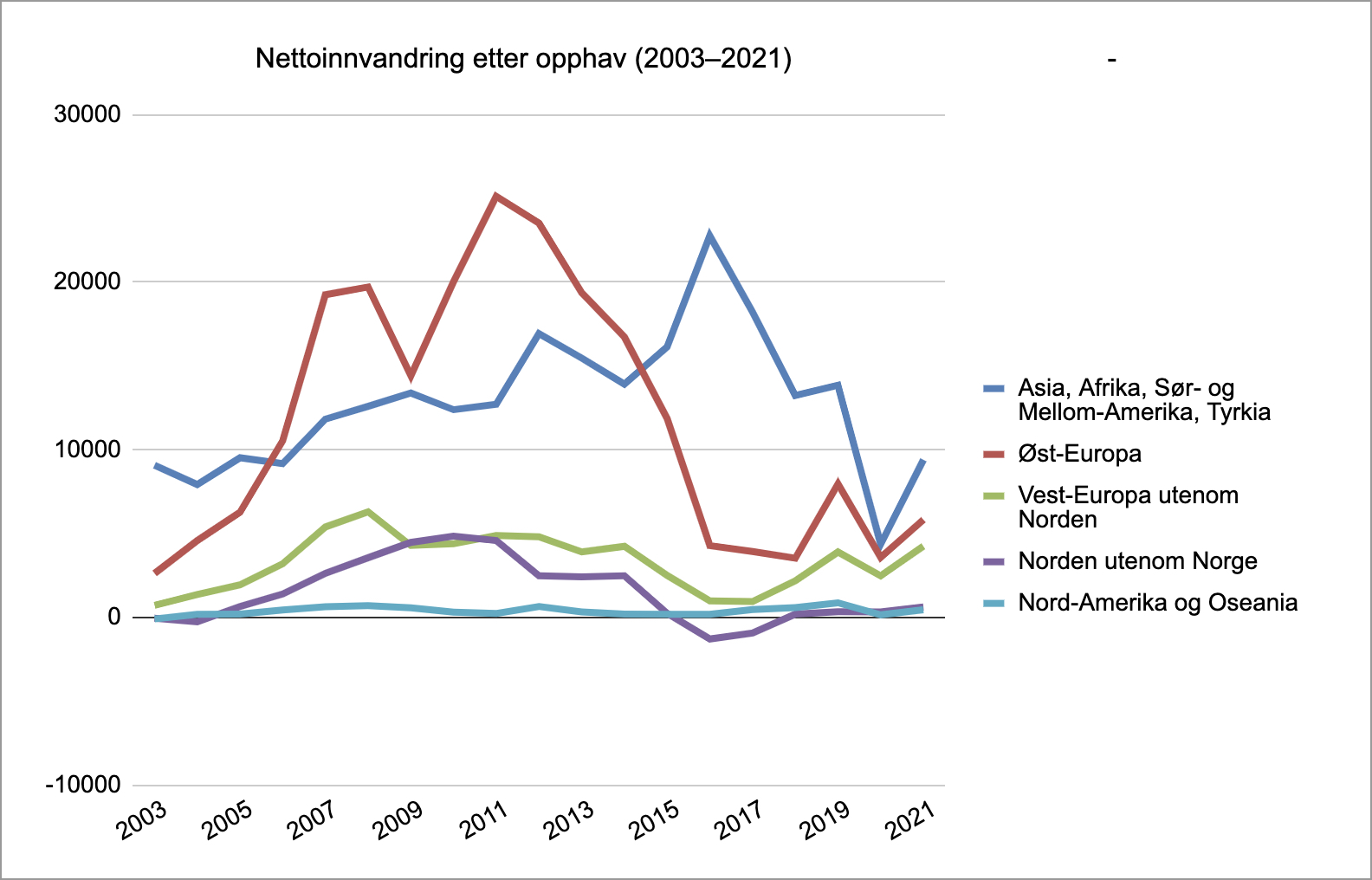 Innvandringen til Norge økte i fjor etter å ha gått kraftig ned under koronaperioden. Norges innvandrerbefolkning har nå krysset en million – hvorav 516.950 er ikke-vestlige og 324.768 er østeuropeere. Jon Michelets gamle drøm er gått i oppfyllelse.