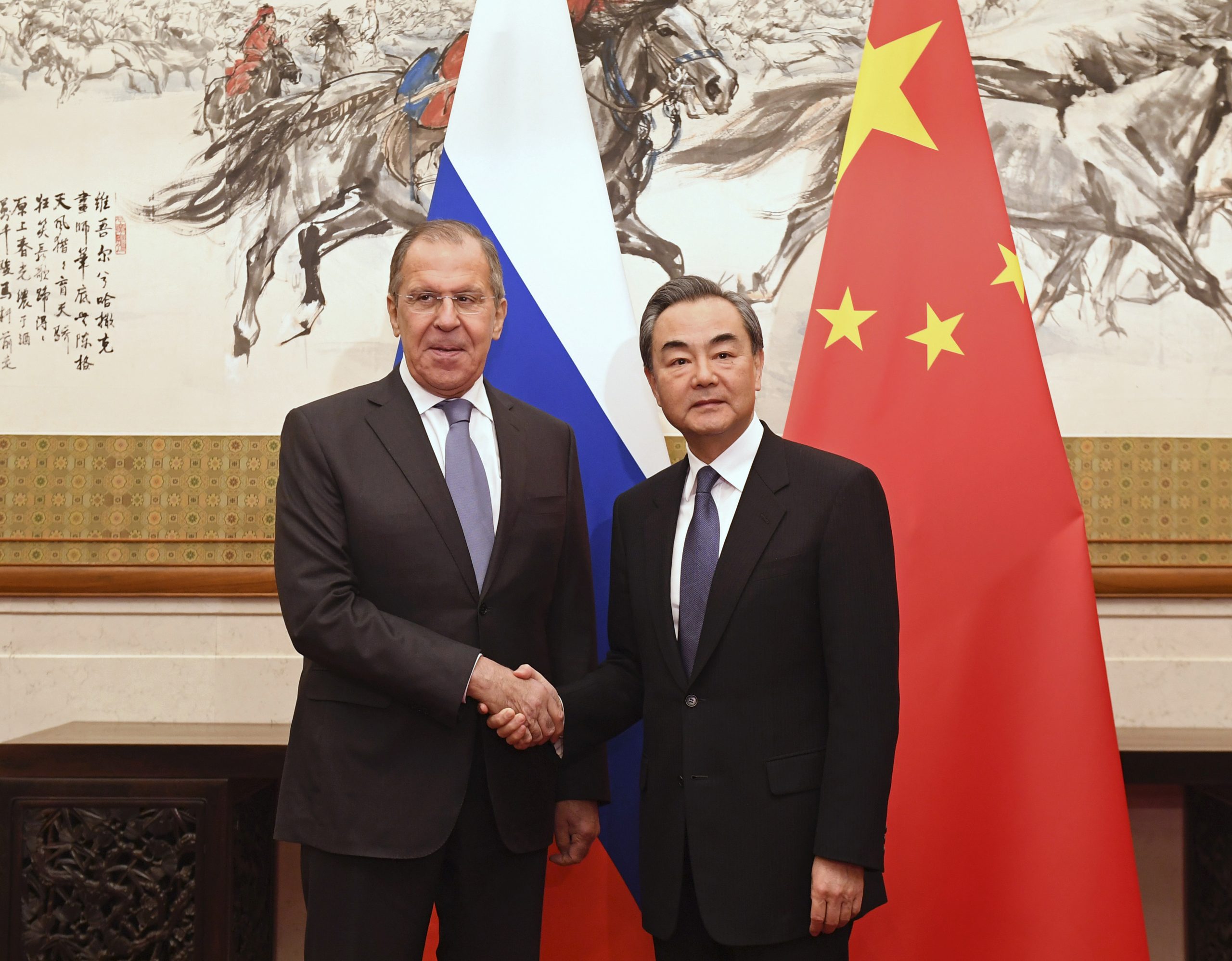 Sammen for demokrati og rettferdighet: Russlands utenriksminister Sergej Lavrov og Kinas utenriksminister Wang Yi. Foto: Madoka Ikegami/Pool Photo via AP