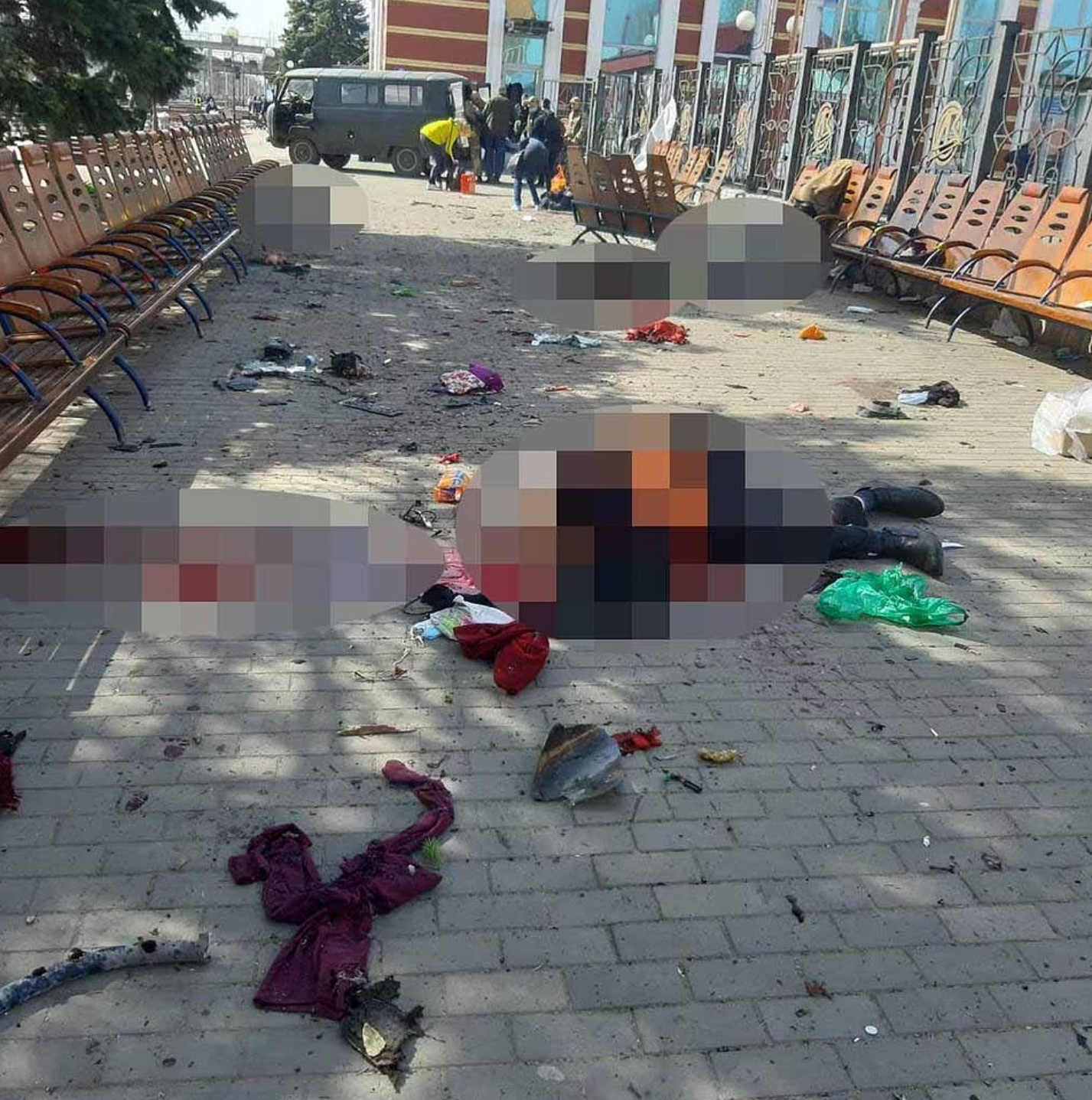To av missilene er funnet liggende på gresset utenfor togstasjonen. På disse skal det være skrevet russisk tekst: «for våre barn» – en hevnmelding fra pro-Moskva soldater. Ukrainas utenriksminister Kuleba fordømmer angrepet. Russerne visste at togstasjonen var full av sivile som ventet på å bli evakuert, skriver han på Twitter. Dette var overlagt slakting, legger han til.
