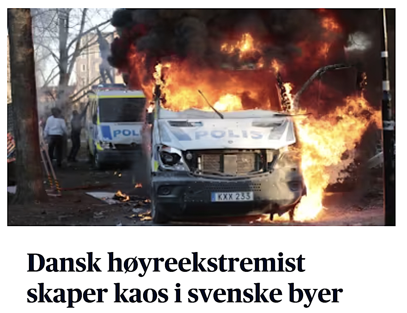 Noen annen konklusjon kan man ikke trekke fra avisens dekning av opptøyene i Örebro langfredag. På forsiden er tonen satt med overskriften «Dansk høyreekstrem skaper kaos i svenske byer», ledsaget av et bilde av en brennende politibil.