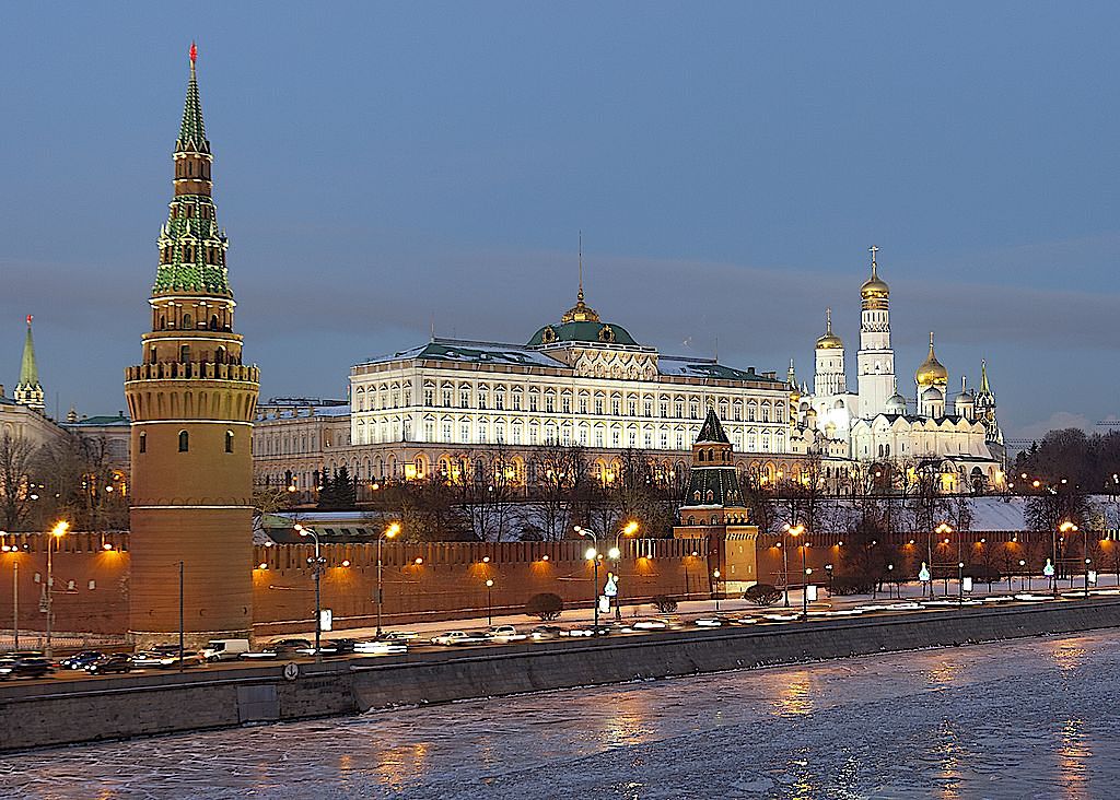 Utsikt til Kreml fra Bolsjoj Kamennyj-broen i Moskva. Foto: Pavel Kazachkov / Flickr / Wikimedia Commons.