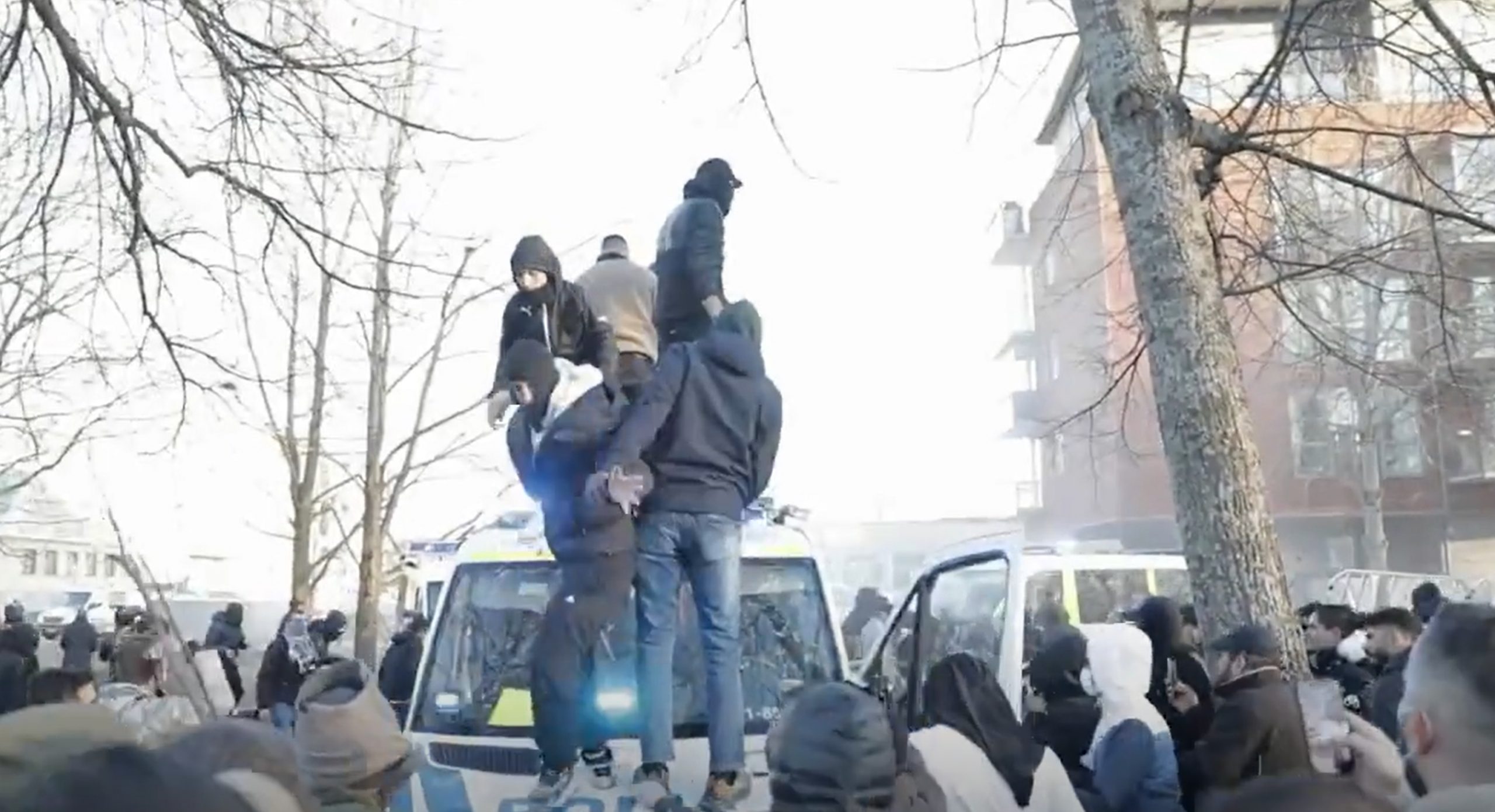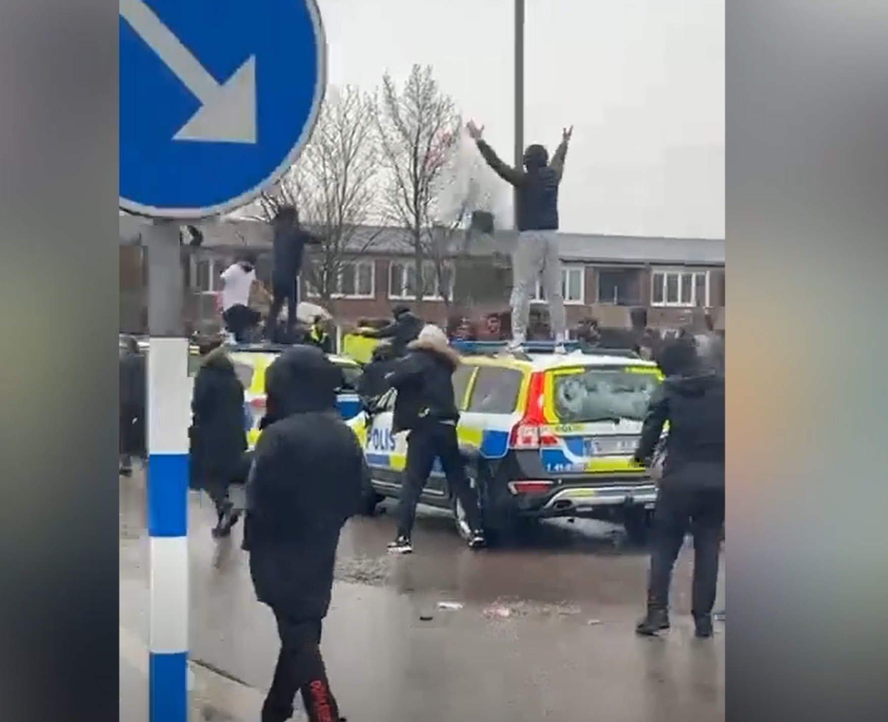 Det svenske politiet sier at det er de som er målskive for volden fra Sveriges muslimske innvandrere. Det var rykter om at Rasmus Paludan skulle dukke opp til en demonstrasjon i Skäggetorp i Linköping, men han har så langt ikke vist seg. Det forhindret ikke at stemningen er hatefull mot politiet.
