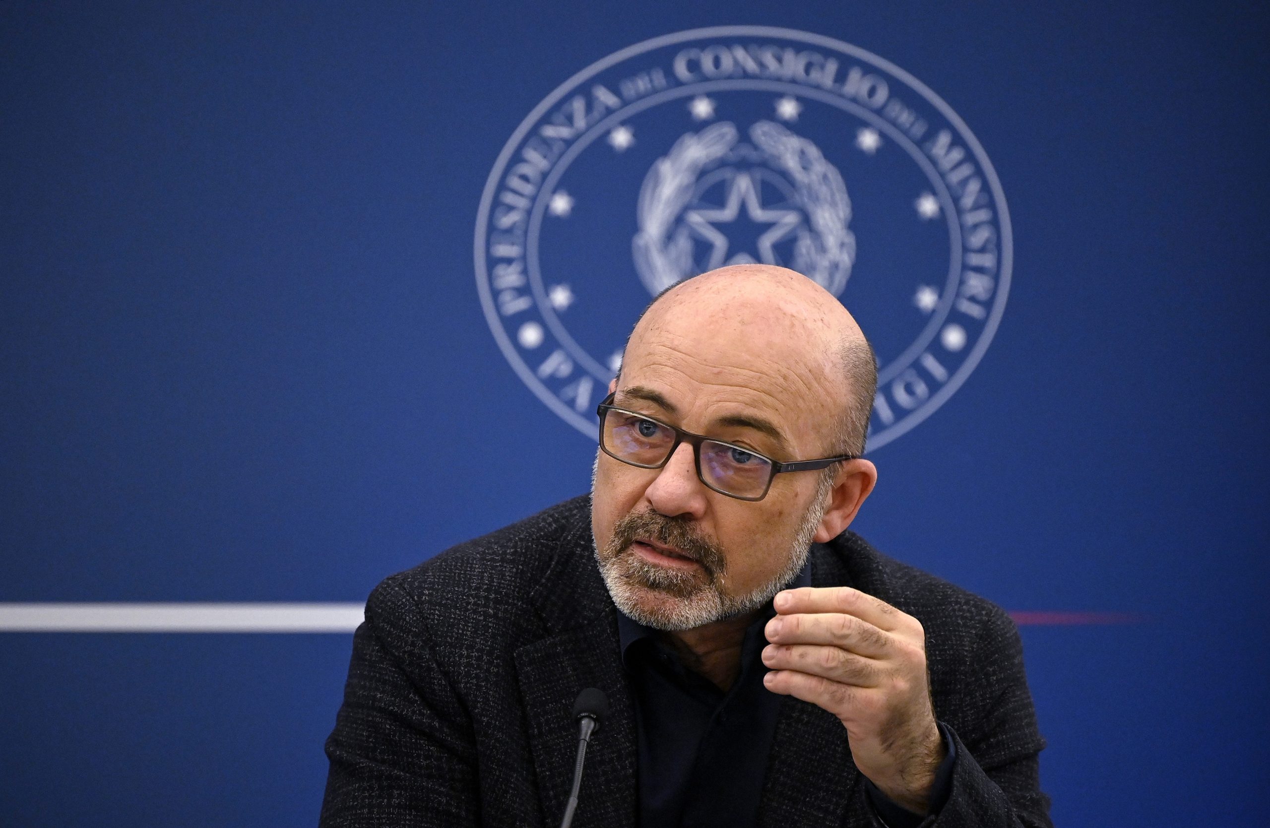 Italias statsråd for det «økologiske skiftet» Roberto Cingolani under en pressekonferanse i Roma den 18. mars 2022. Foto: Riccardo Antimiani / Pool via AP / NTB.