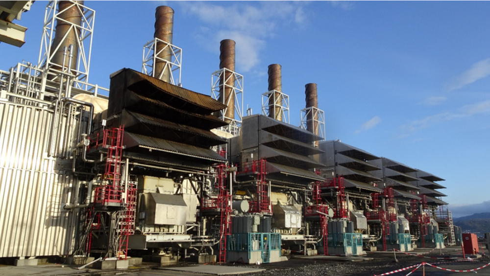 Rekken av fem gassturbiner og kompressorer, som til nå har produsert kraft til driften av Melkøya LNG, fotografert etter brannen høsten 2020. Brannen var begrenset til den ytterste turbinen til venstre og skyldtes selvantennelse. Foto: Petroleumstilsynet.